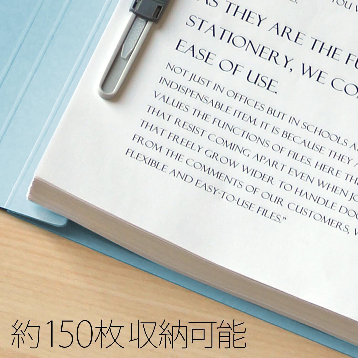 【穴間隔】80 mm 【穴数】2穴 【最大収容枚数】150 枚 【表紙】ファイルカード紙 (古紙パルプ配合再生紙) 【とじ具】100%再生ポリプロピレン
