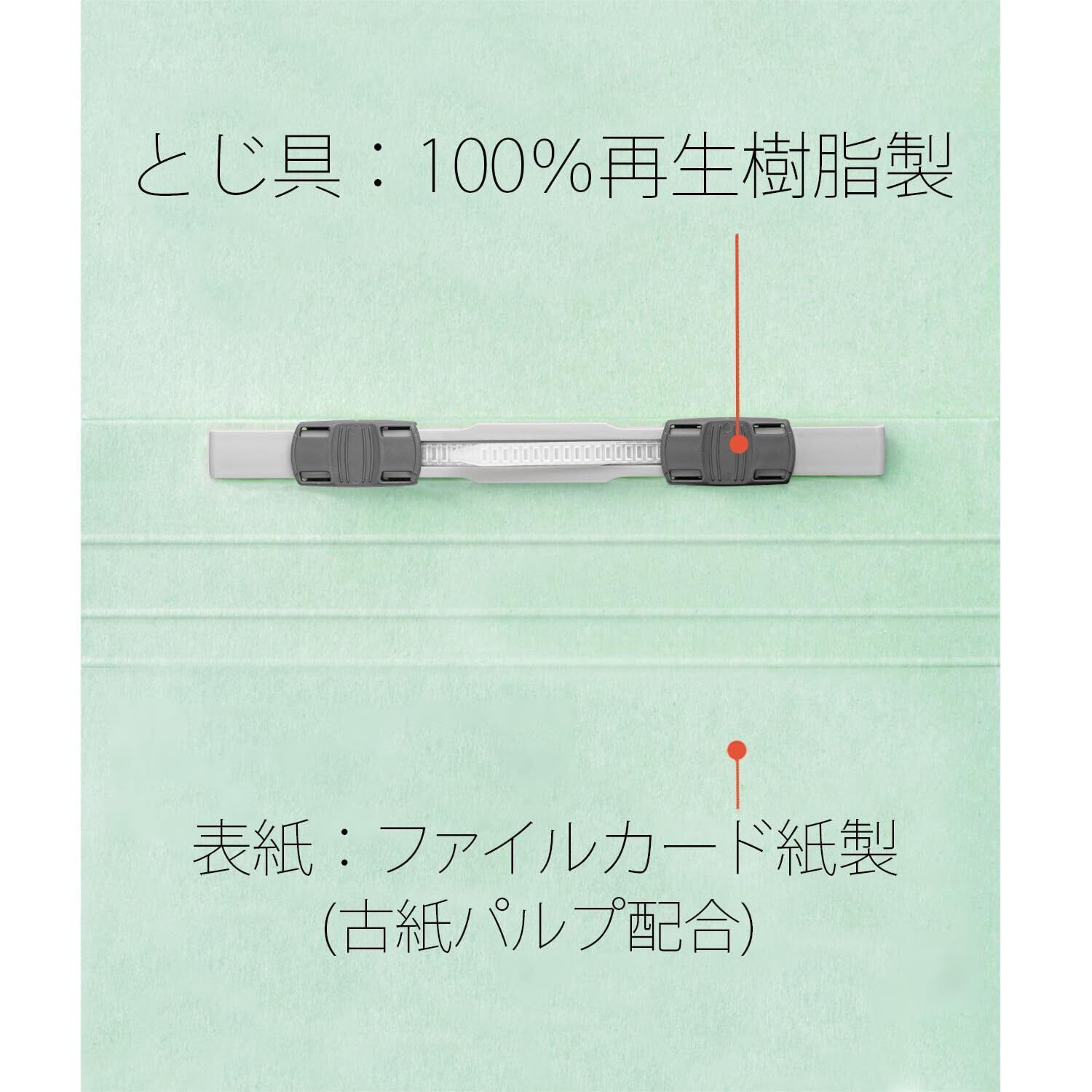 【材質】表紙:ファイルカード紙(古紙パルプ配合)、とじ具:再生PP100%