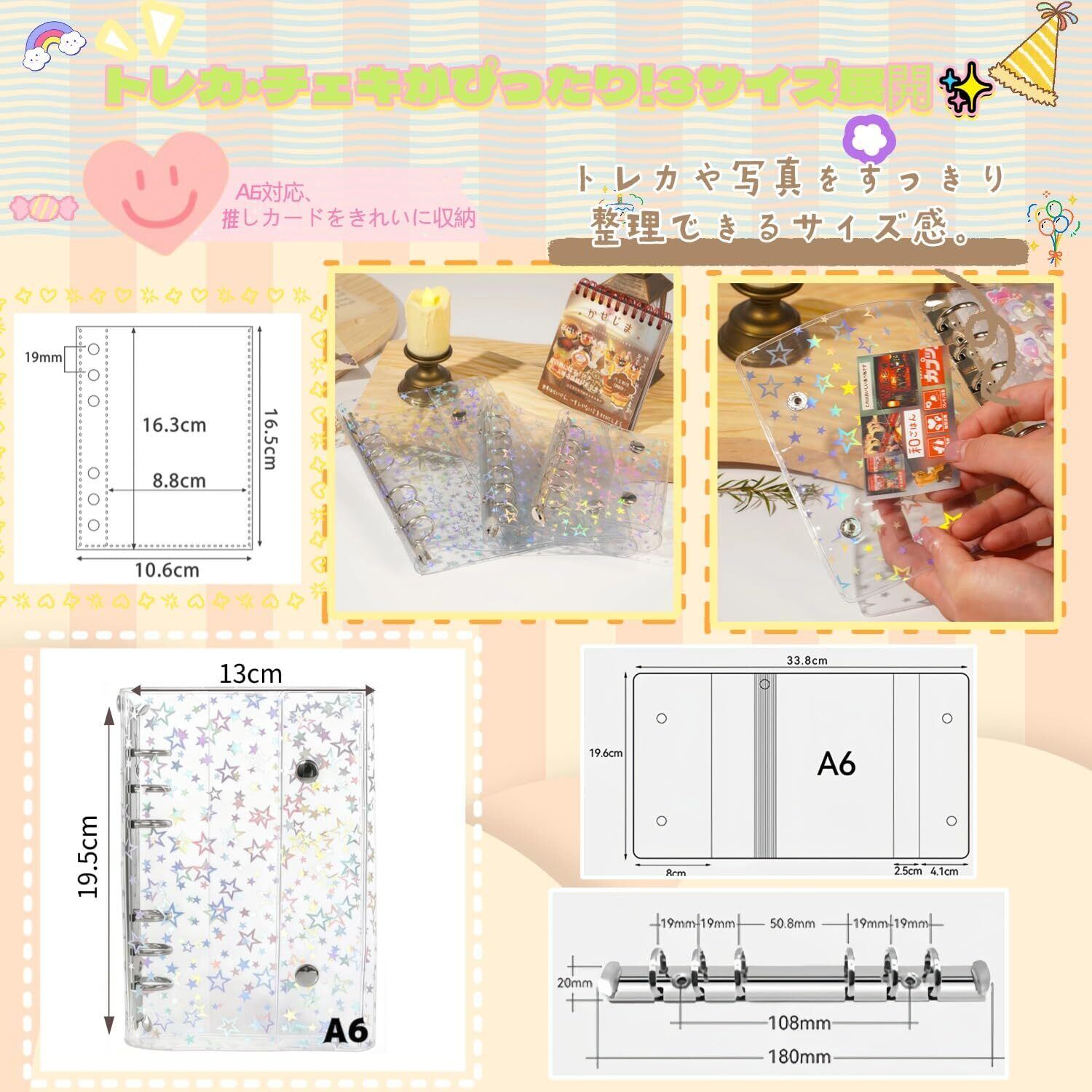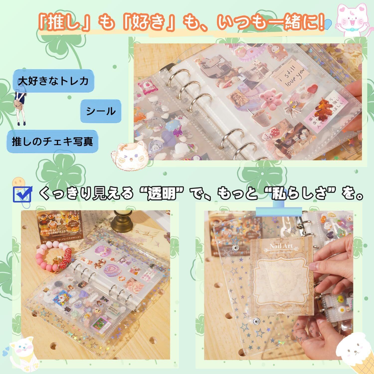 シール帳 A6 透明 星柄【20枚リフィル付き】 シールバインダー 6穴 シール収納 ミニバインダー 推し活 ステッカー収納 カード 写真整理 クリアファイル 女の子 文房具(星柄タイプA6)