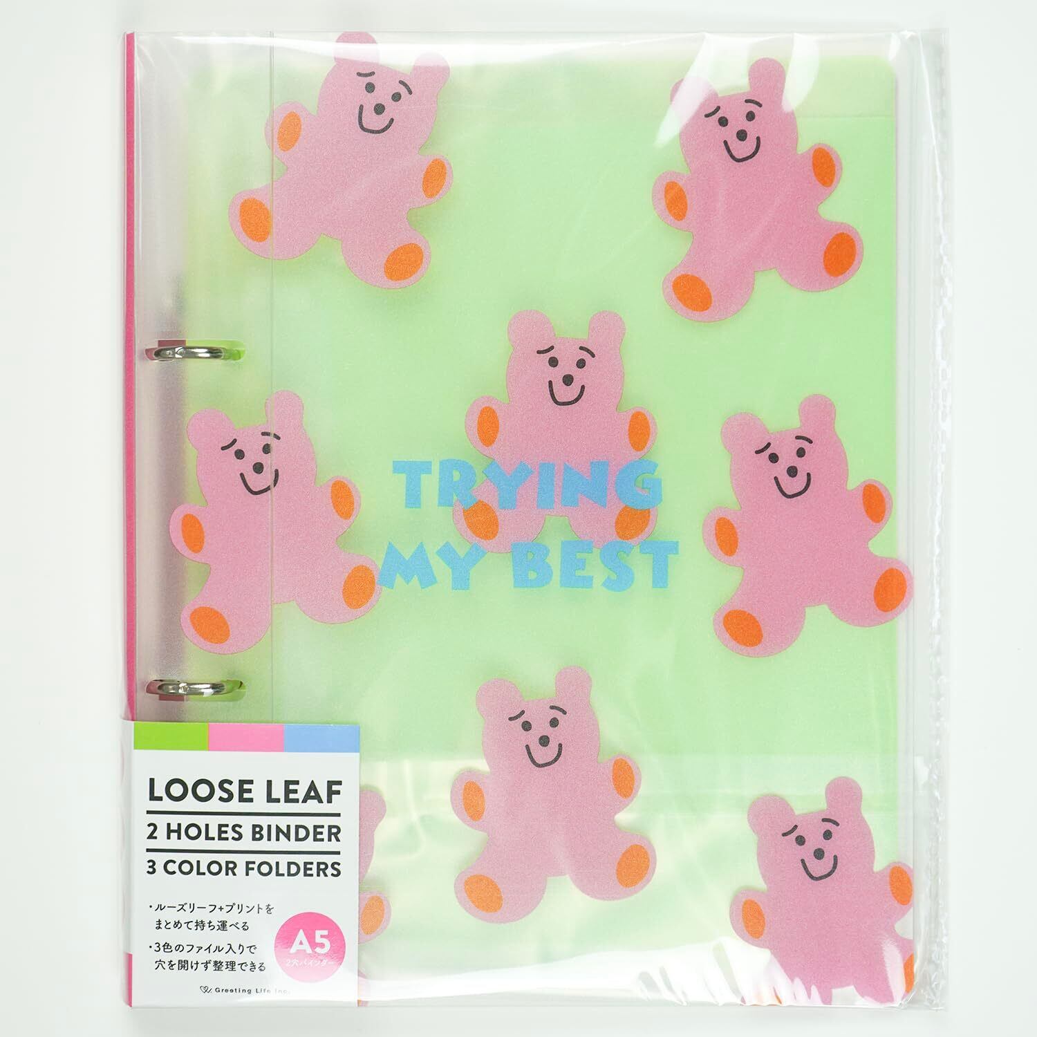 【新着商品】シック グリーティングライフ 2穴 バインダー A5 サイズ クリア クマ MMZ-460 ライトグリーン