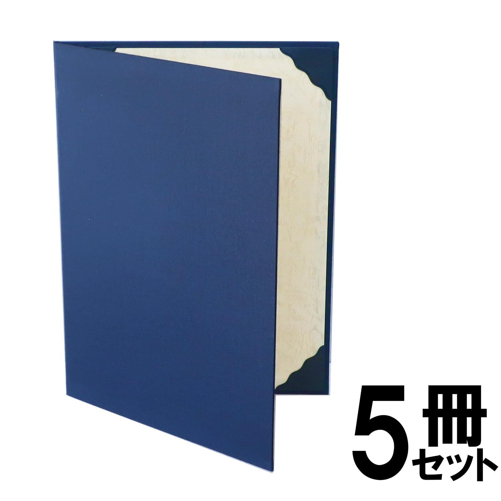 京都マルタヤ 5冊セット A4 賞状ホルダー 紺 紙表紙 厚 1枚収納用【5冊セット A4紺紙ベタ厚+紺コ4】