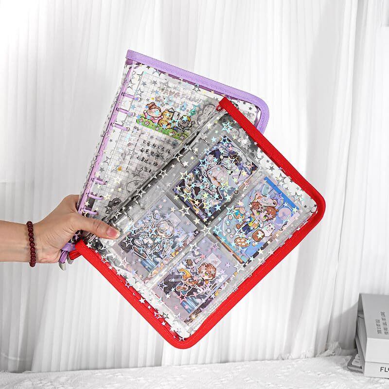 このシール帳は6穴バインダー式で、リフィルを追加したり、交換するのが簡単! 透明デザインのシール帳だから、シールやカードがひと目で見えて、整理整頓も楽しくなること間違いなし お気に入りのシールを使って、自分だけの“デコシール帳”を作るのもおすすめ! 推しトレカやチェキを入れて、あなただけの“オリジナルシール帳アルバム”を楽しもう