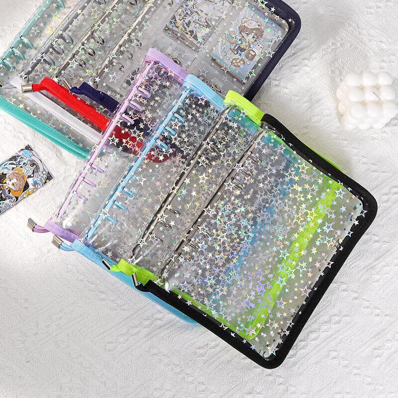 クリアシール帳は、シンプルで透明の方もあり、星柄ホログラムがきらきら輝く方もあり。 角度によって異なる輝きを放つシール帳で、見るたびにドキドキ。 シール帳好きな女の子必見!自分だけのオリジナルシール帳アルバムを作れちゃいます。推し活やコレクションにもぴったりなキラキラシール帳です