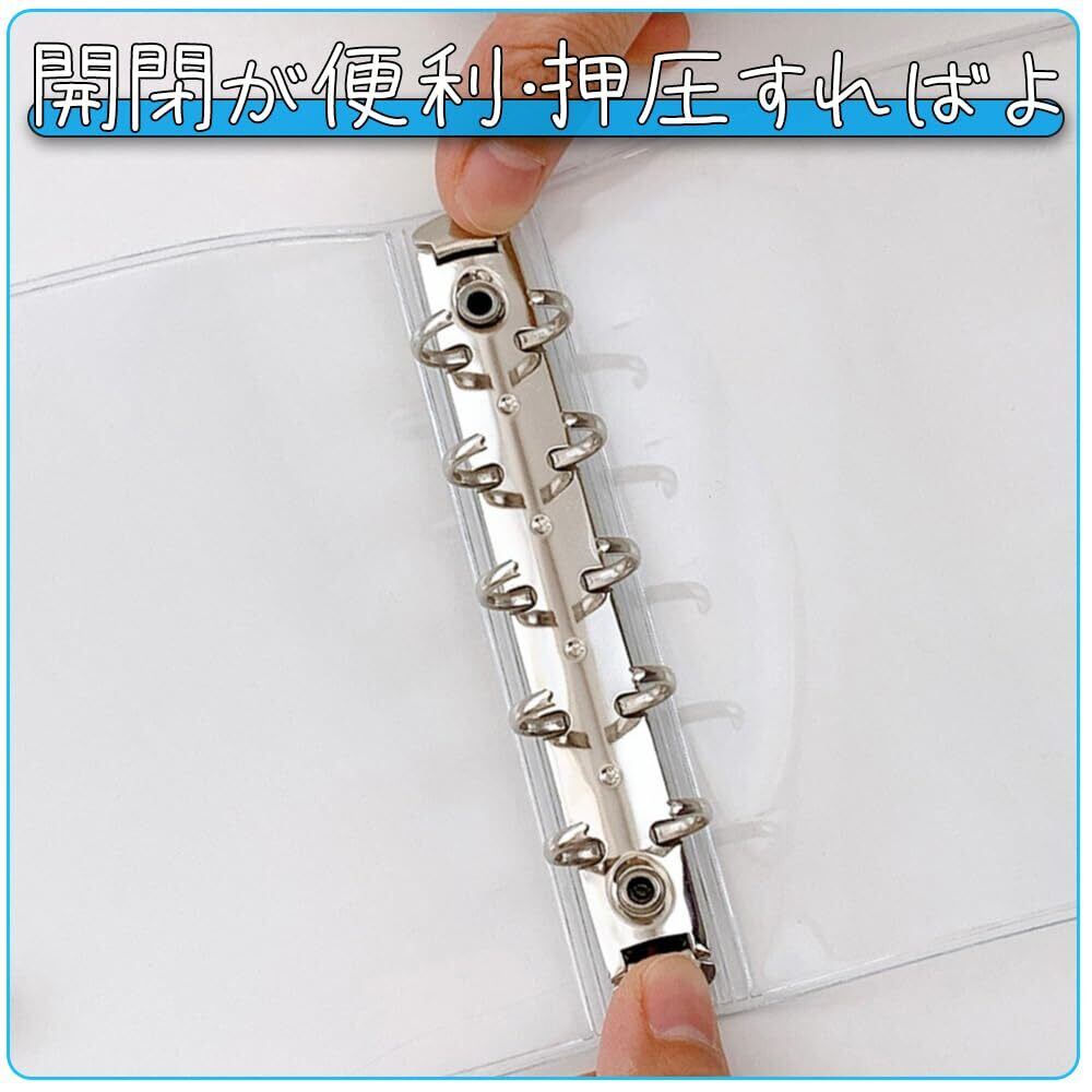 1.【透明で持ち運びやすい】全面クリアのシール帳透明タイプで、シンプルかつ軽量。手帳やカード、シールの整理に使いやすく、毎日の携帯にも便利 2.【耐久性のあるPVC素材】透明バインダーは厚みのあるPVCを使用し、柔らかく扱いやすい仕様。汚れに強く、長くきれいに使える構造 3.【M5サイズ対応】コンパクトなM5サイズでバッグに入れやすく、5穴リング式でページの開閉や入れ替えがスムーズ。透明シール帳としても活躍 4.【幅広い用途】日記、手帳、メモ、コラージュ、推し活カード整理など多用途に使用可能。シール帳 透明を探す方にぴったり 5.【セット内容】透明バインダー本体に加え、M5リフィル20枚付きですぐに使える便利なセット。趣味整理や日常ノートにも最適