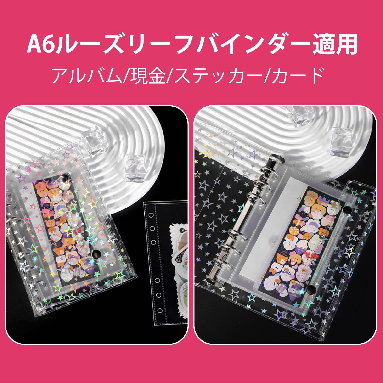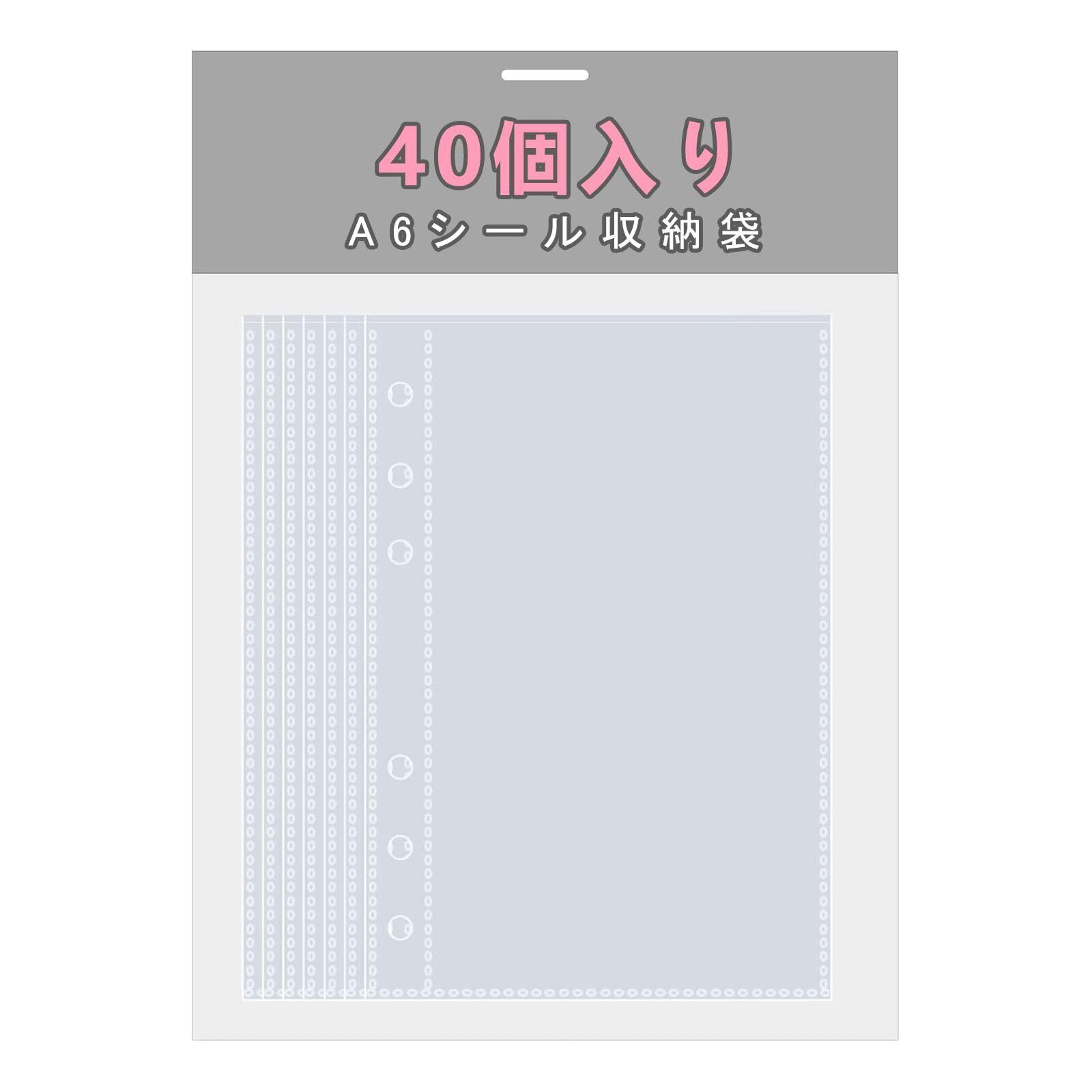 40枚入り A6 クリアファイル シール台紙 6穴 バインダーリフィル はがせる 剥離紙 0.1mm 厚手 丈夫 文書 写真 収納 手帳 補充用