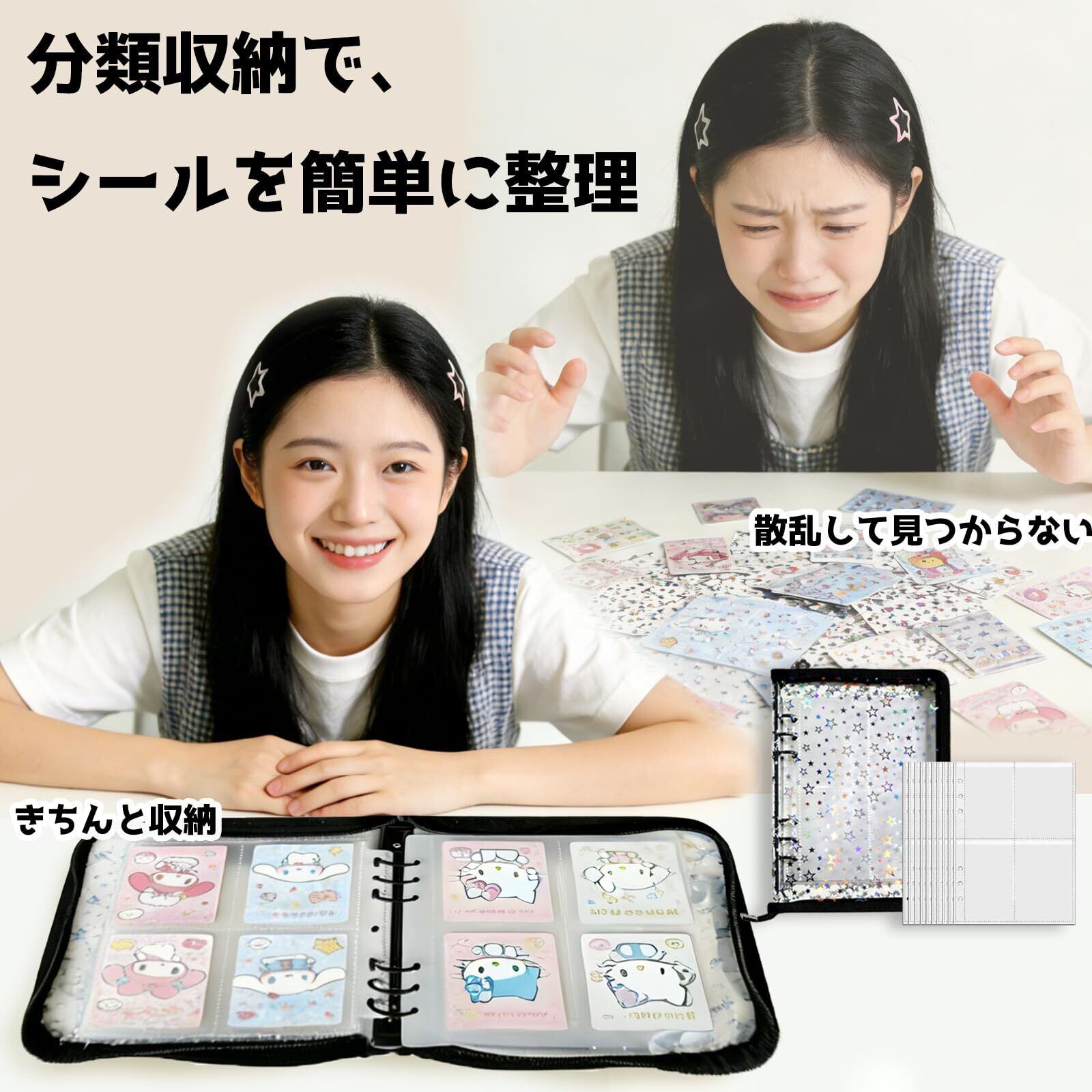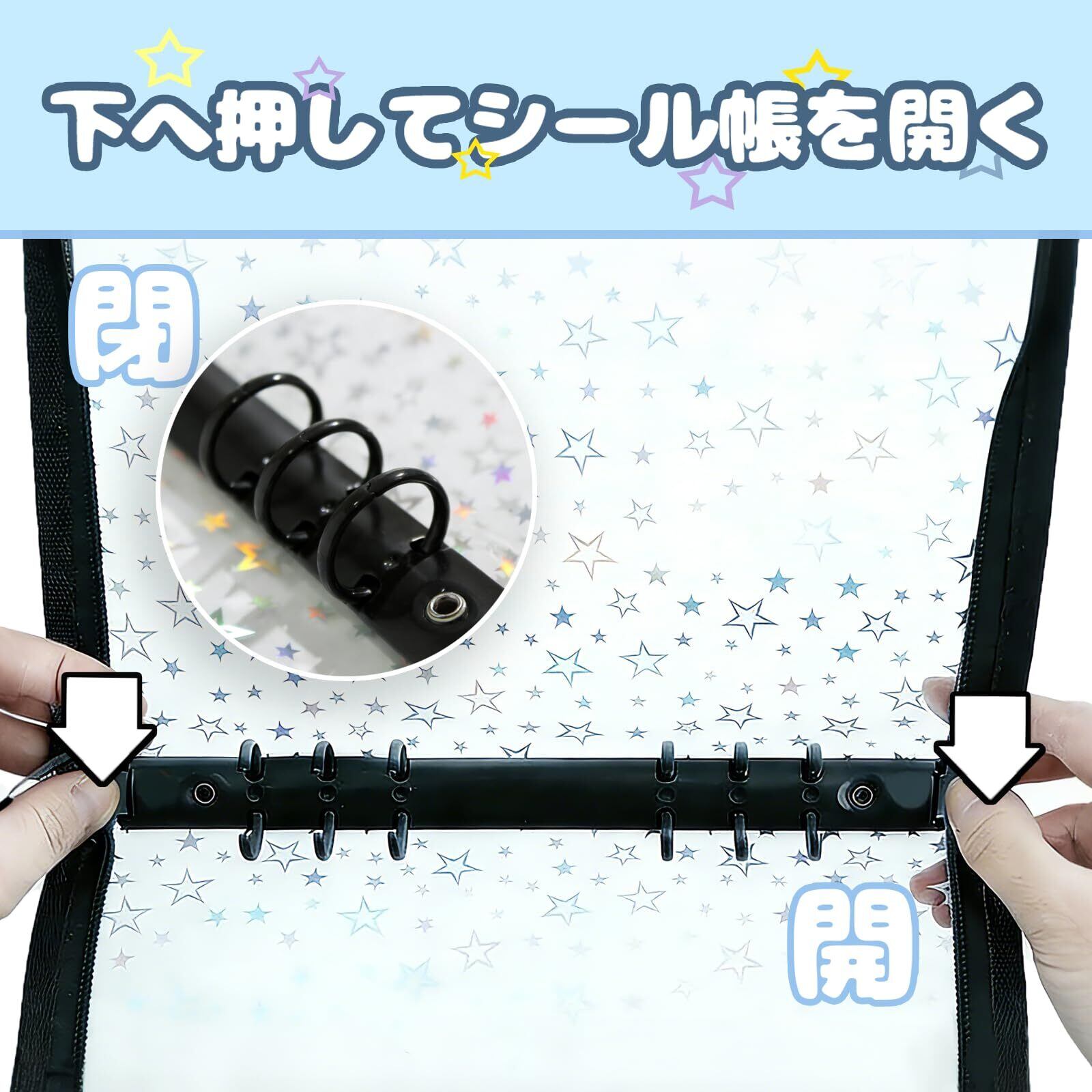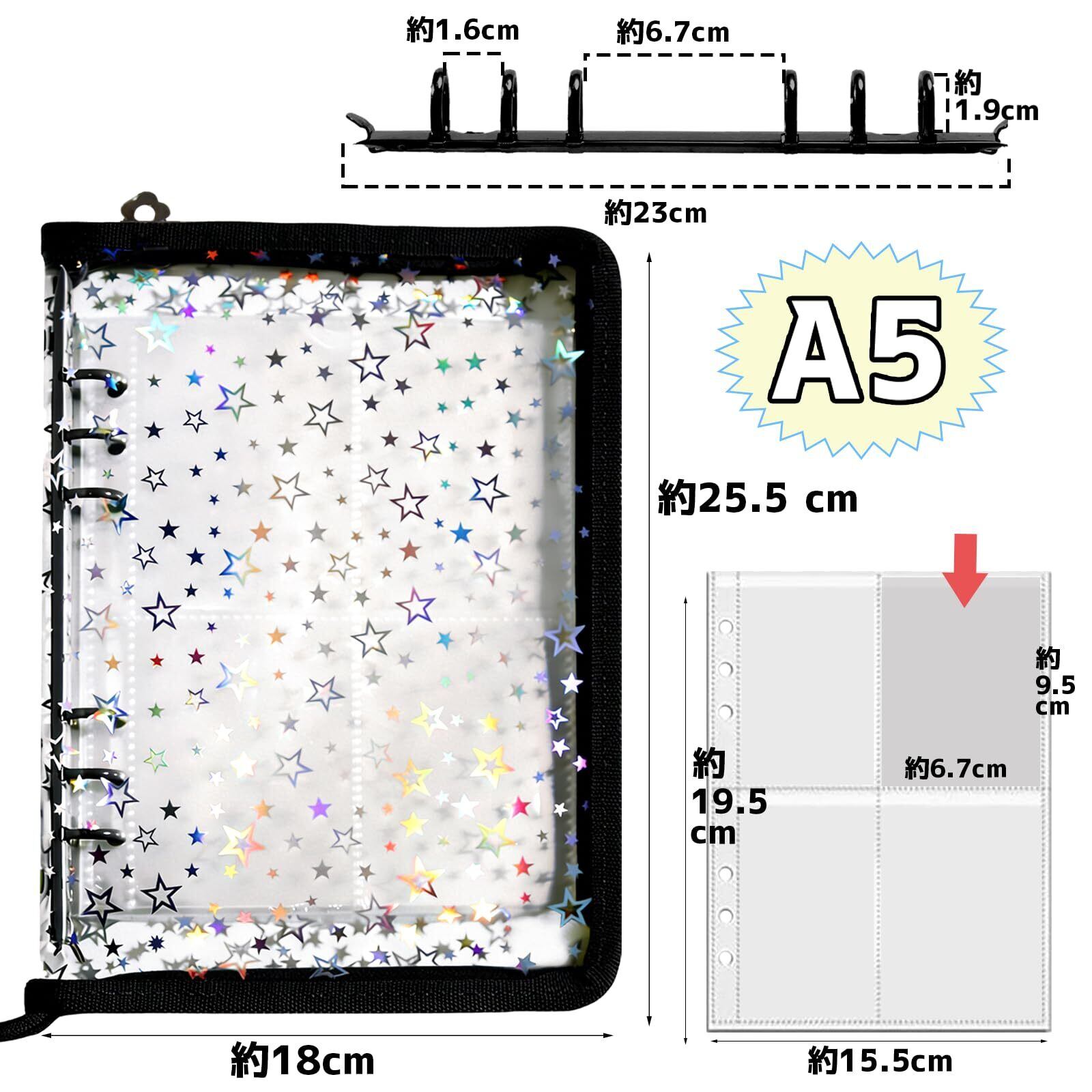 シール帳 A5 リフィル10枚付き 透明 バインダー 6穴 女の子 トレカ収納 大きめ 星柄 推し活グッズ おしゃれ 可愛い ファスナー付き