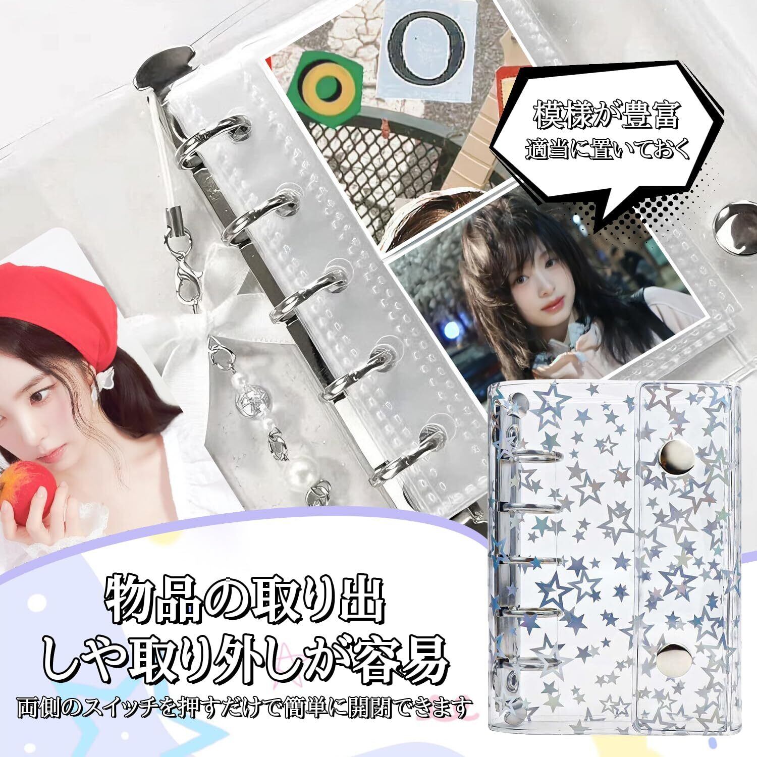 【素材と特徴】 透明なPVC素材を使用しているため、中身を隈なく見せることができ、カスタマイズにも最適です。お気に入りのカードやデコレーションをそのまま見せて、オリジナリティあふれる一冊に仕上げましょう。