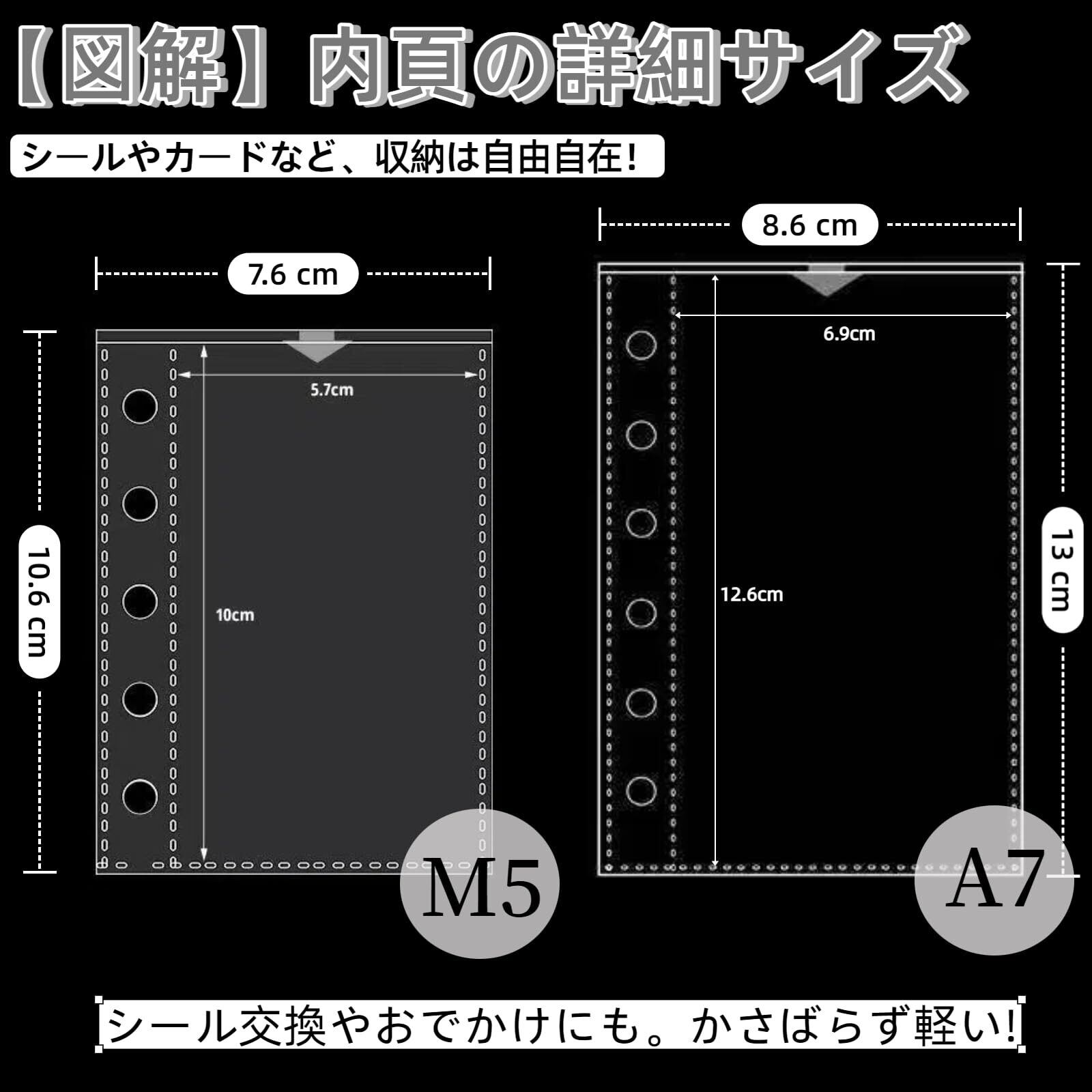 コンパクトM5サイズで持ち運び便利手のひらに収まるM5サイズ(マイクロ5穴)で、通学やお出かけにもラクラク携帯。小さなバッグにもすっぽり収まり、いつでもどこでもシールコレクションを楽しめます。5穴リリングで中身の差し替えも自由自在です。