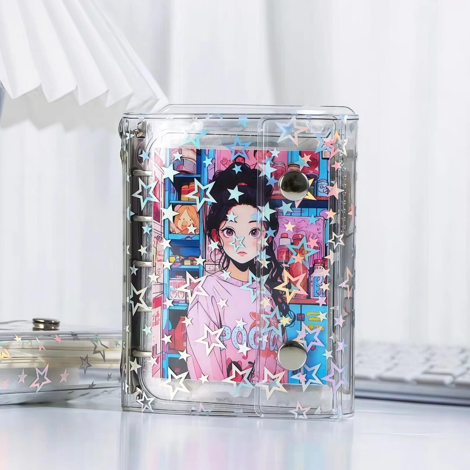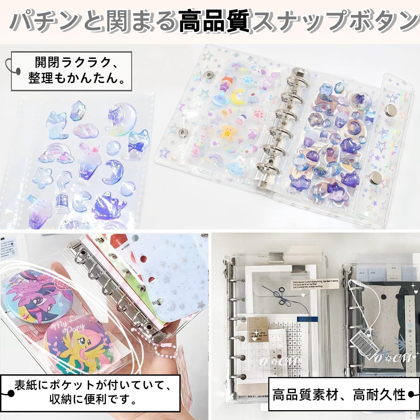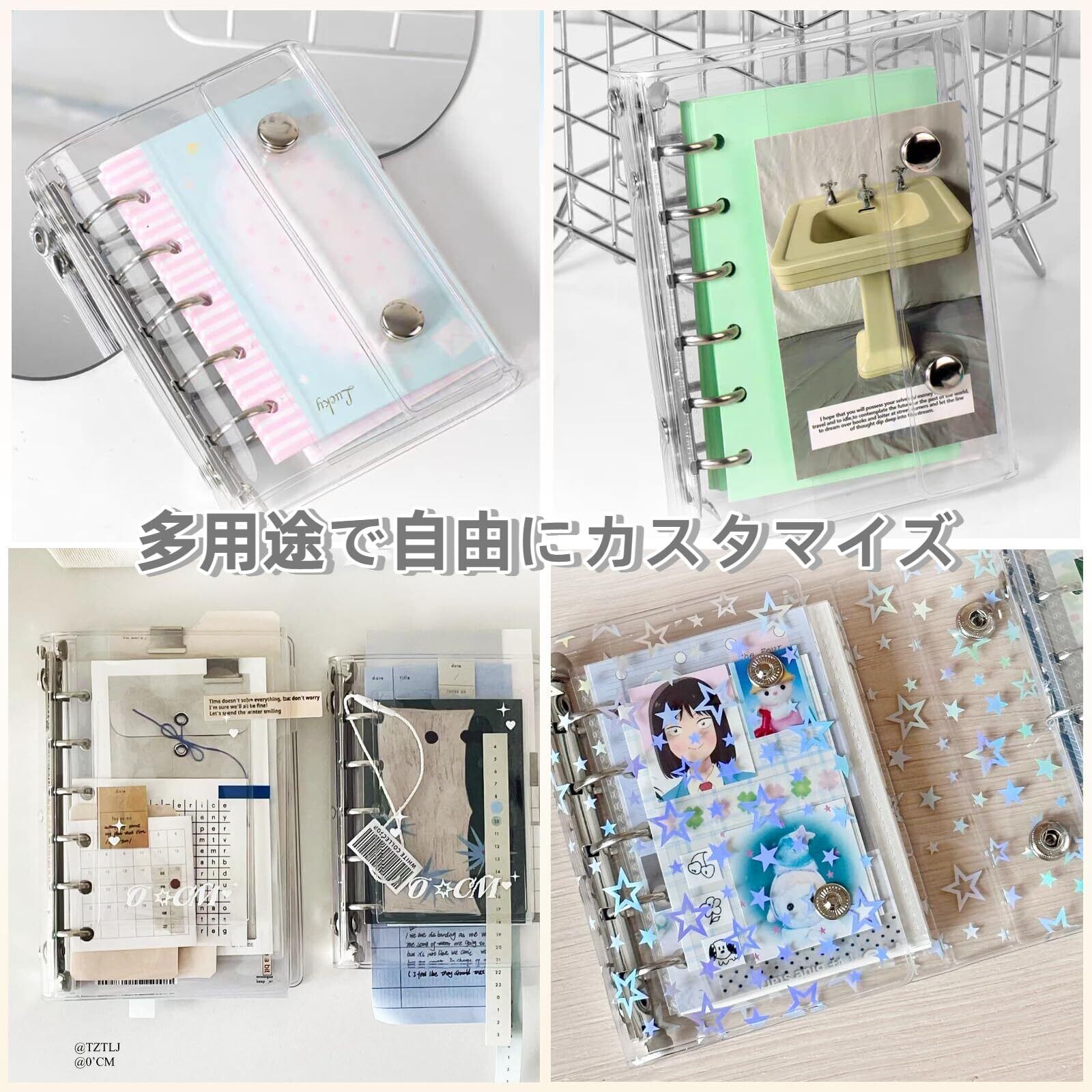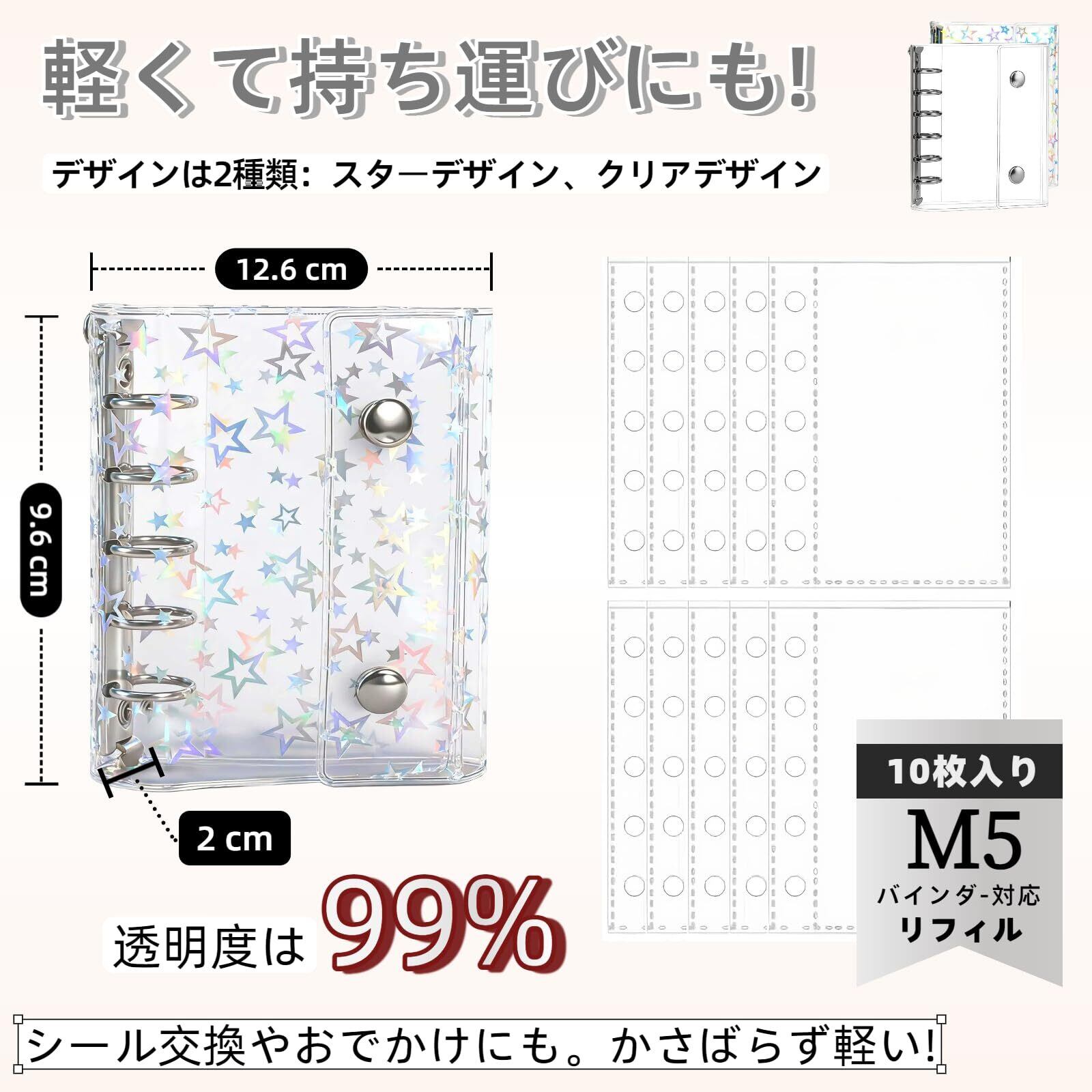 シール帳 透明 女の子 星型 はがせる A7 サイズ 5穴バインダー クリアシール手帳(リフィル10枚付き)シール収納 推し活グッズ