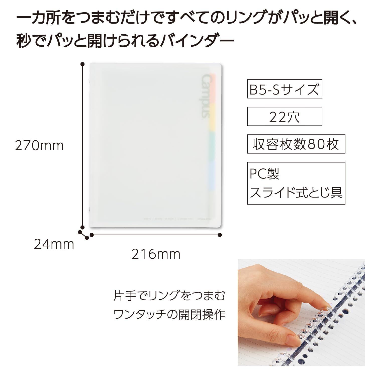 【最大収容枚数】 80枚 【穴数】 22穴