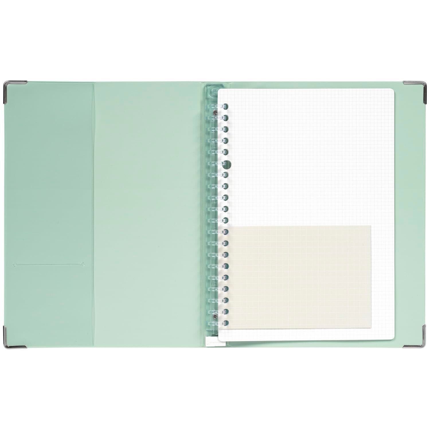 【付属品】3mm方眼罫ルーズリーフ10枚、5mm方眼罫くすみカラーアソートミニサイズ5枚、サイドインクリアポケット1枚