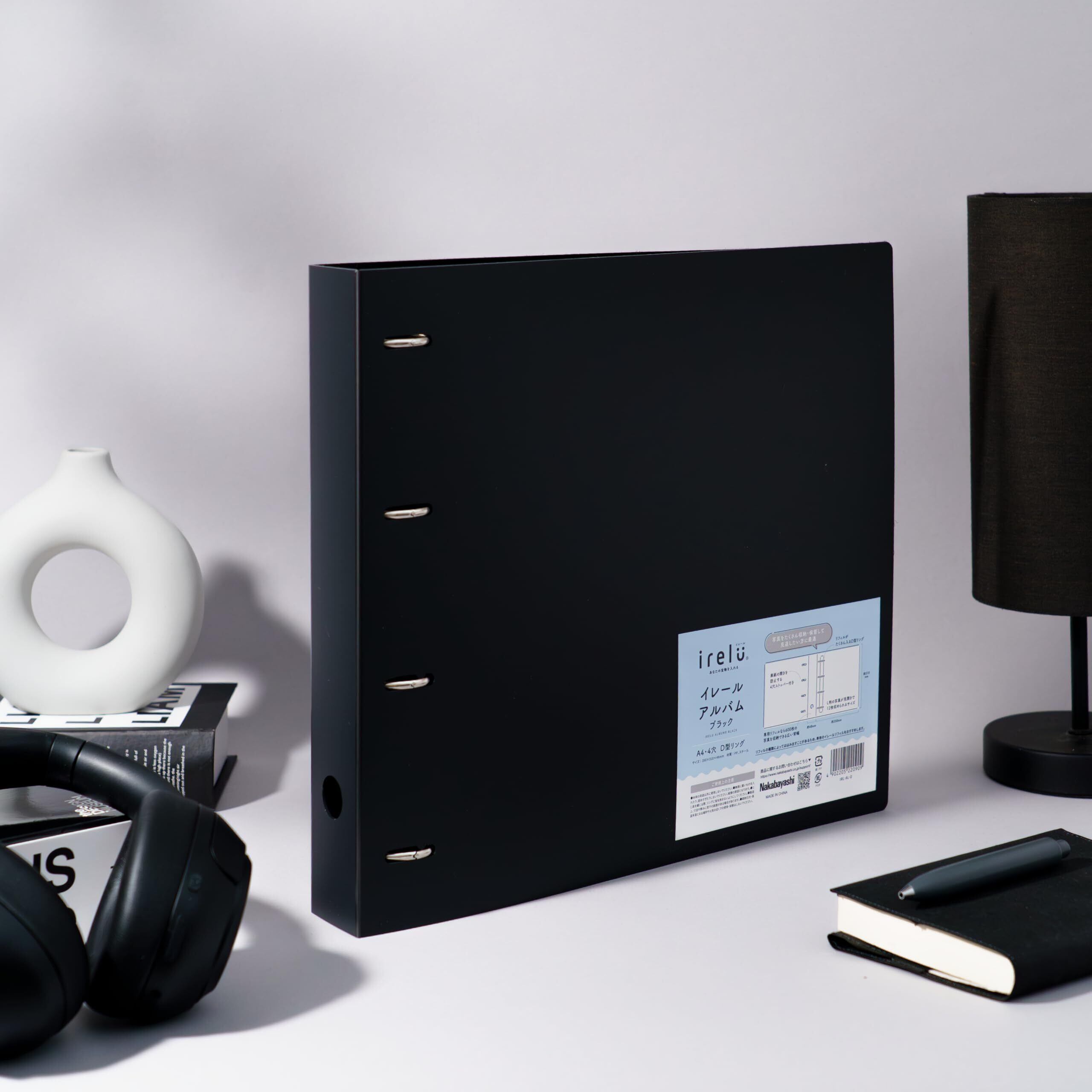 【新春セール】【irelu】リフィル式アルバム 写真 トレカ ミニ色紙収納 [イレールアルバム] ブラック D型4穴リング シンプル IRL-AL-D