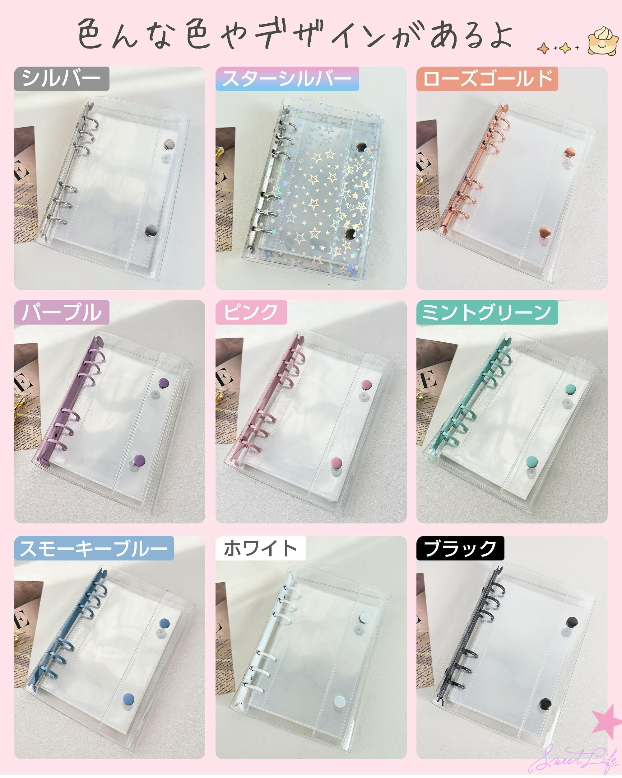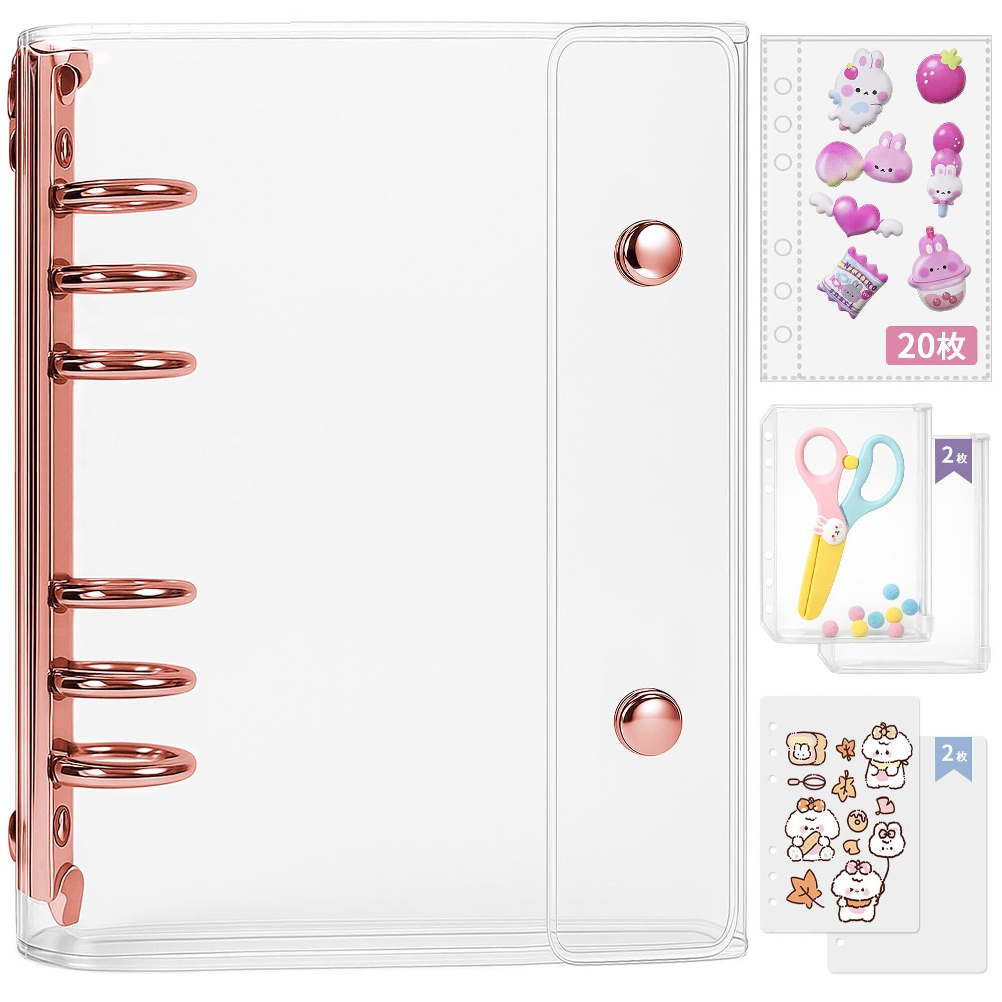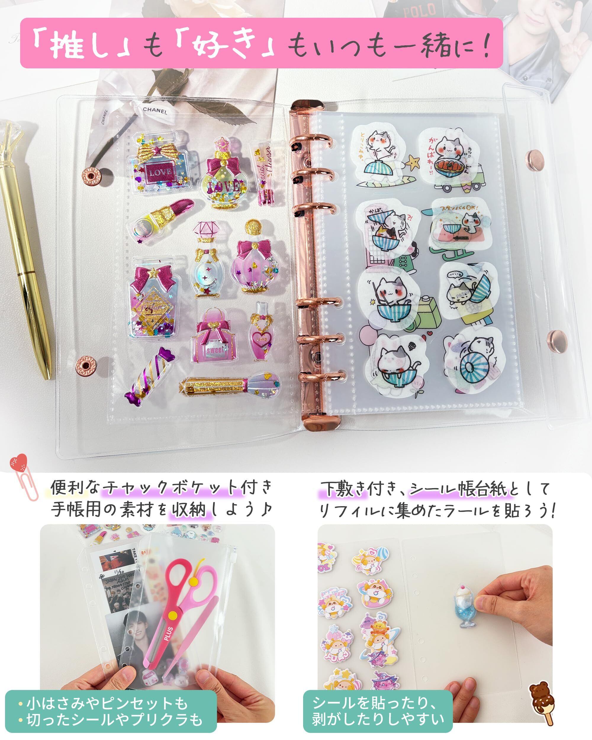 A6サイズ 透明バインダー シール手帳 ミニ 【バインダー×1個 リフィル×20枚 チャック付きポケット×2枚 下敷き×2枚】プリ帳 カードスリーブ はがせる ポケットサイズ 女の子 ローズゴールド