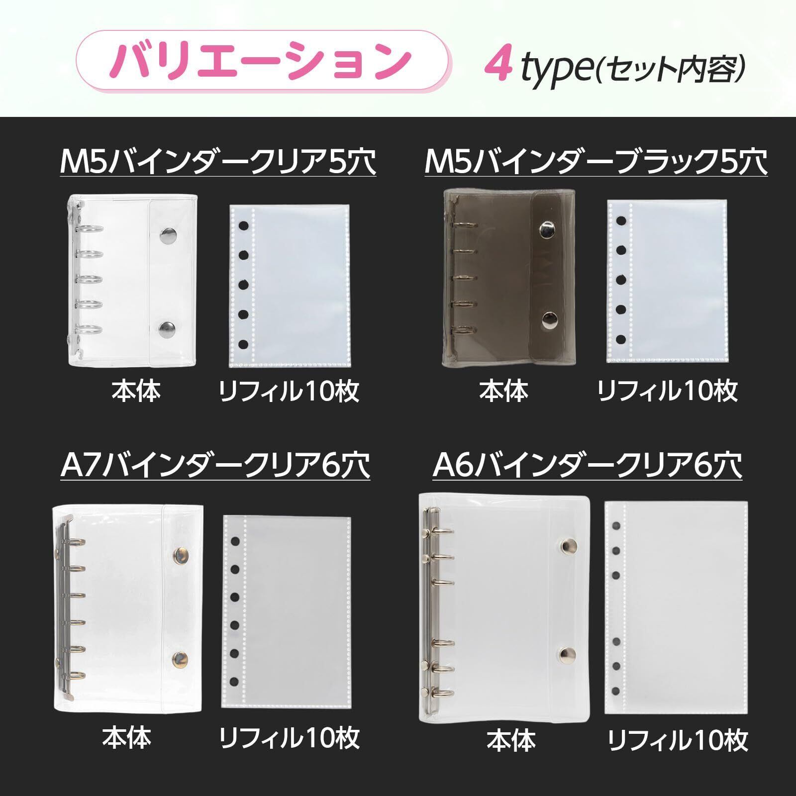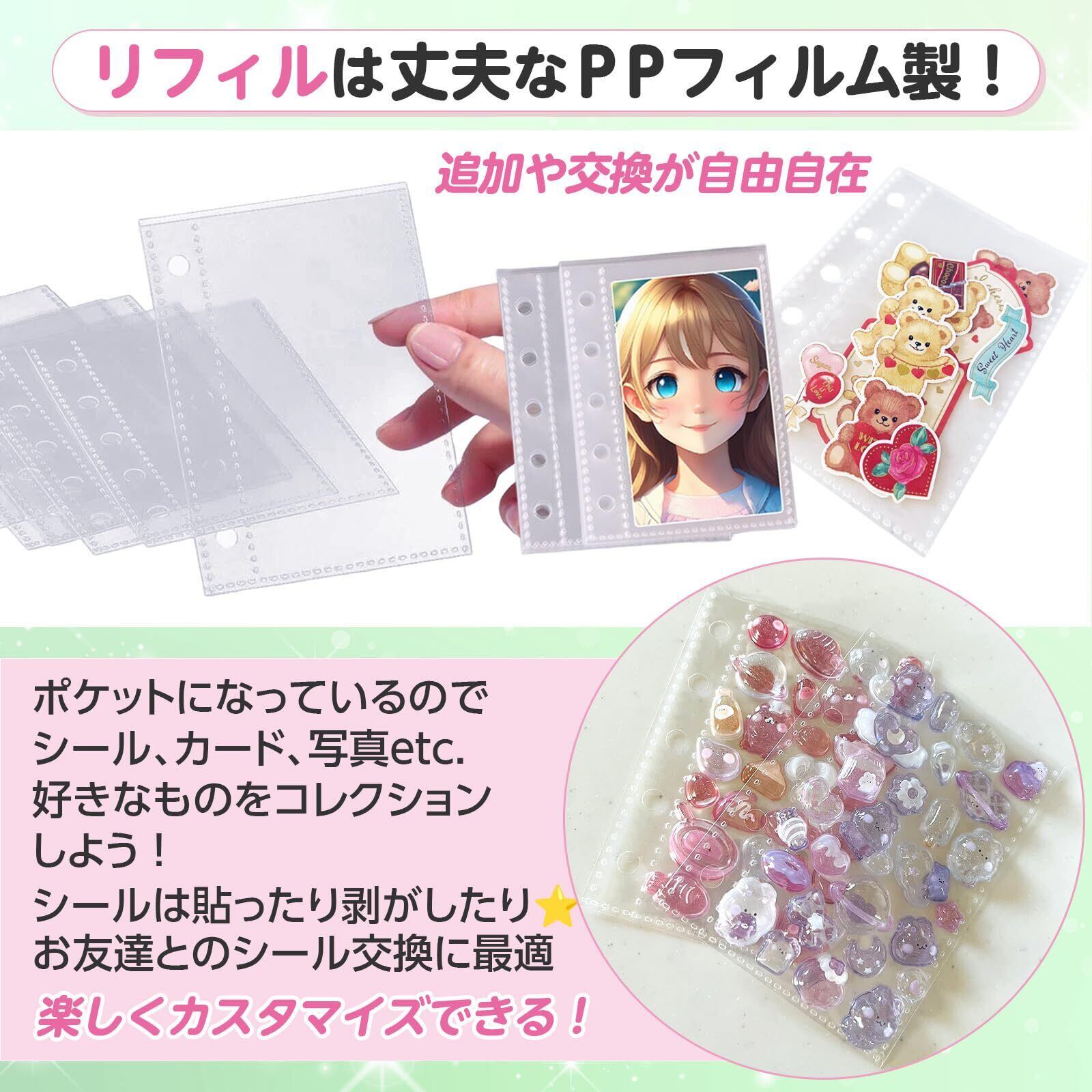 [Jecca] シール帳 透明 クリア リフィル10枚付き シール バインダー 女の子 シール収納 クリアバインダー 令和 詰め替え シールファイル PVC製 ミニバインダー コンパクト ぷくぷくシール ダブルボタン (A7クリア)