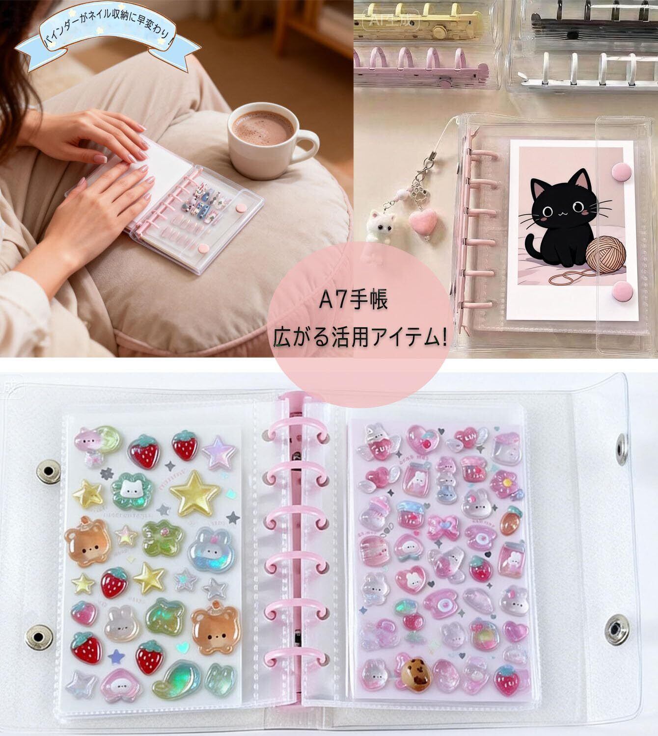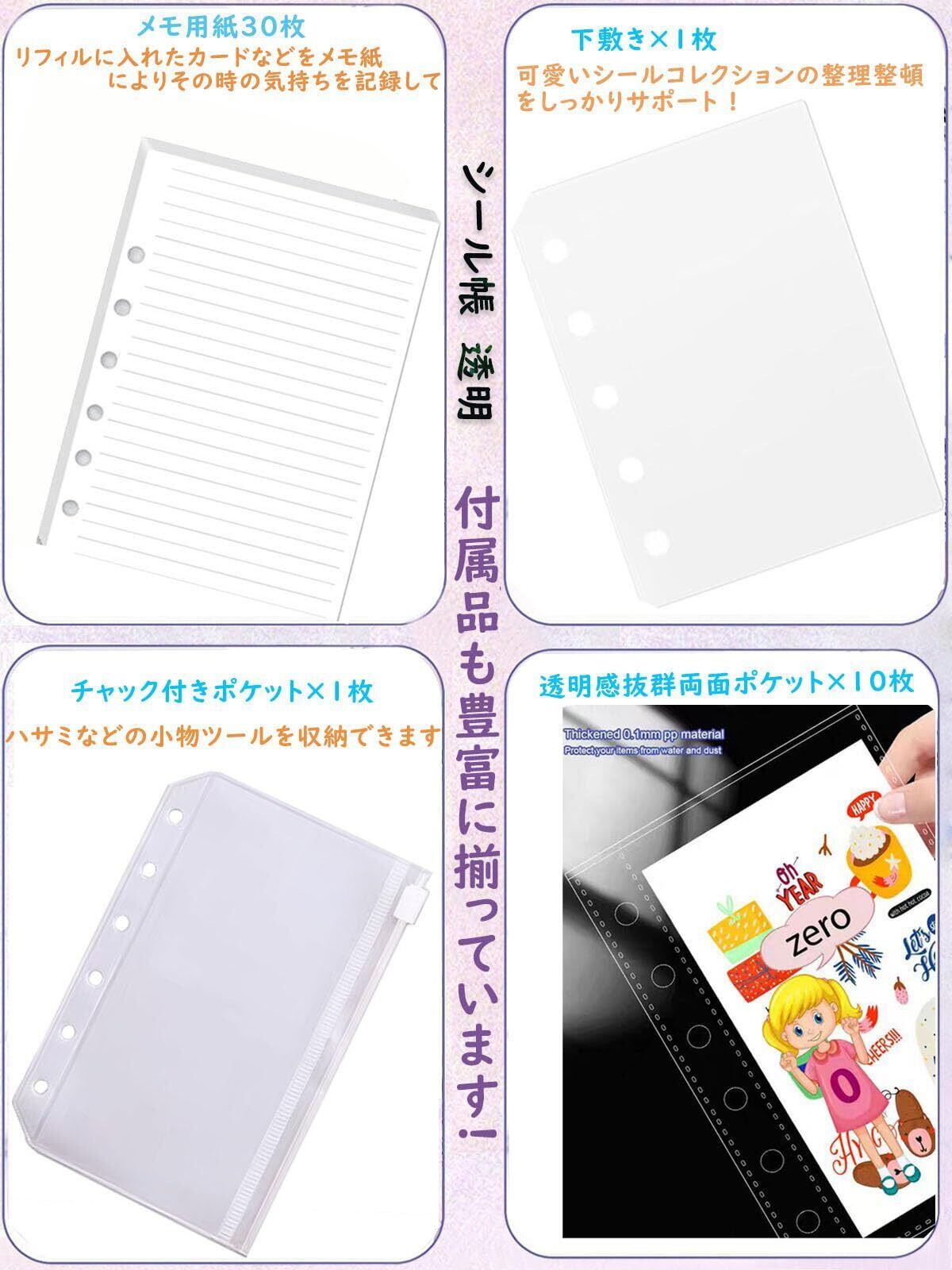 【クリアシール帳 a7は 高透明クリア素材で中身が一目瞭然】A7サイズのシールバインダーは、3層構造の高透明度フィルムを採用。収納したシールやカードがくっきりと映え、6穴バインダー仕様でページもがっちり固定。透明シール帳としても、クリアバインダーとしても、かわいいシールをしっかり守ります。女の子の心をくすぐる、おしゃれで安心なシール収納にぴったりです。