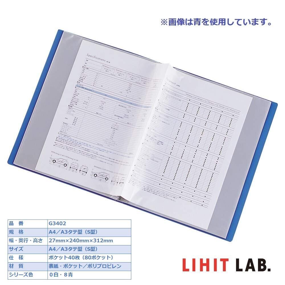 リヒトラブ クリヤーブック サイドベンツ A4タテ/A3ヨコ 40枚 80ポケット 白 G3402-0