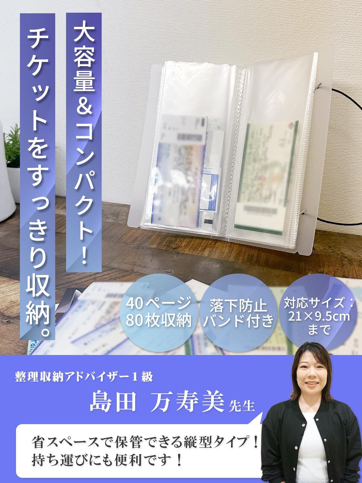 【在庫セール】【整理収納アドバイザー監修】 チケットホルダー (縦型80枚収納)「21×9.5㎝まで対応x長めチケットもすっきり収納」