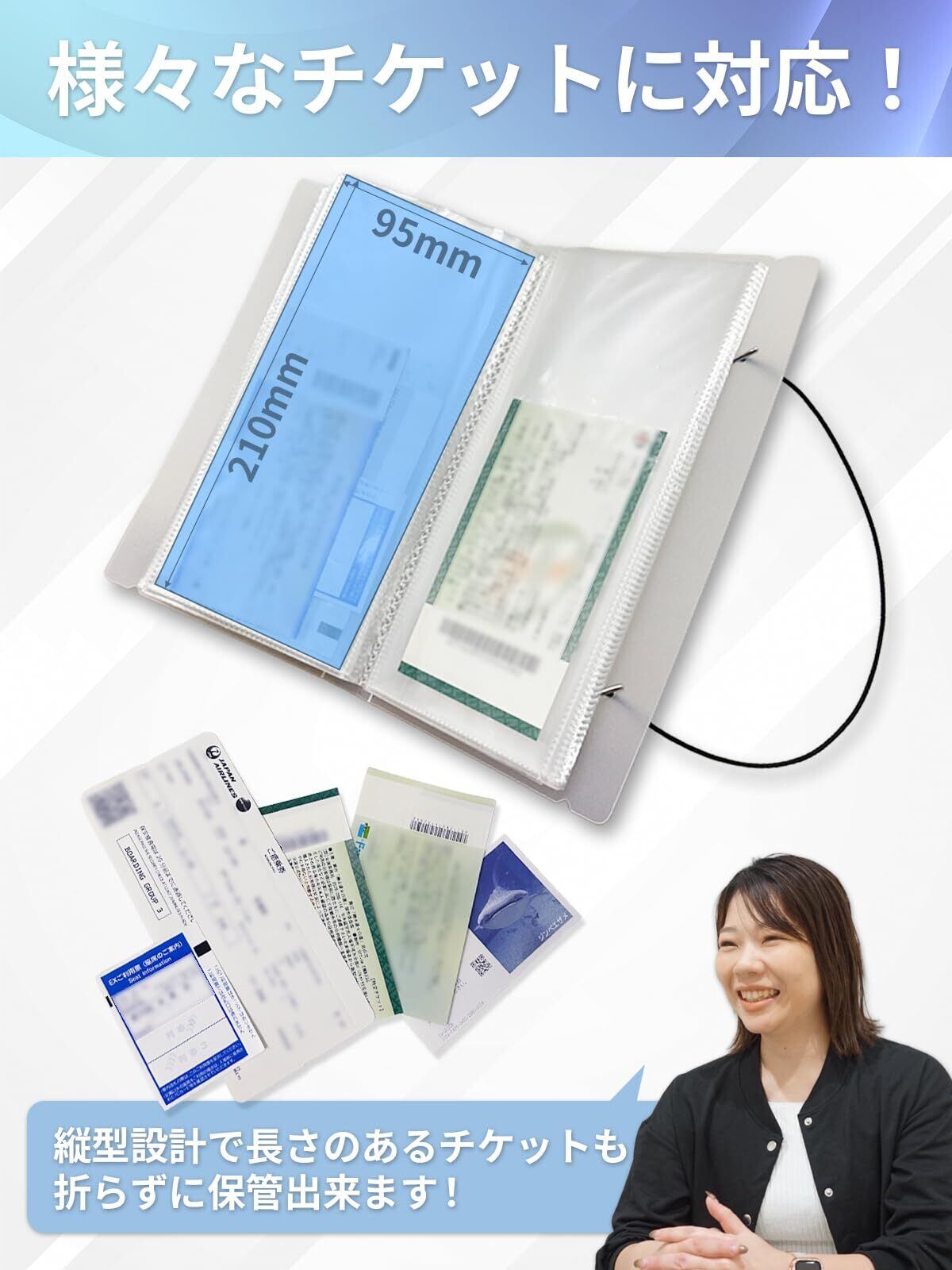 【対応サイズ21×9.5cmまで】コンビニ発券チケット、飛行機、スポーツ観戦、映画など、長めのチケットもすっきり収納。