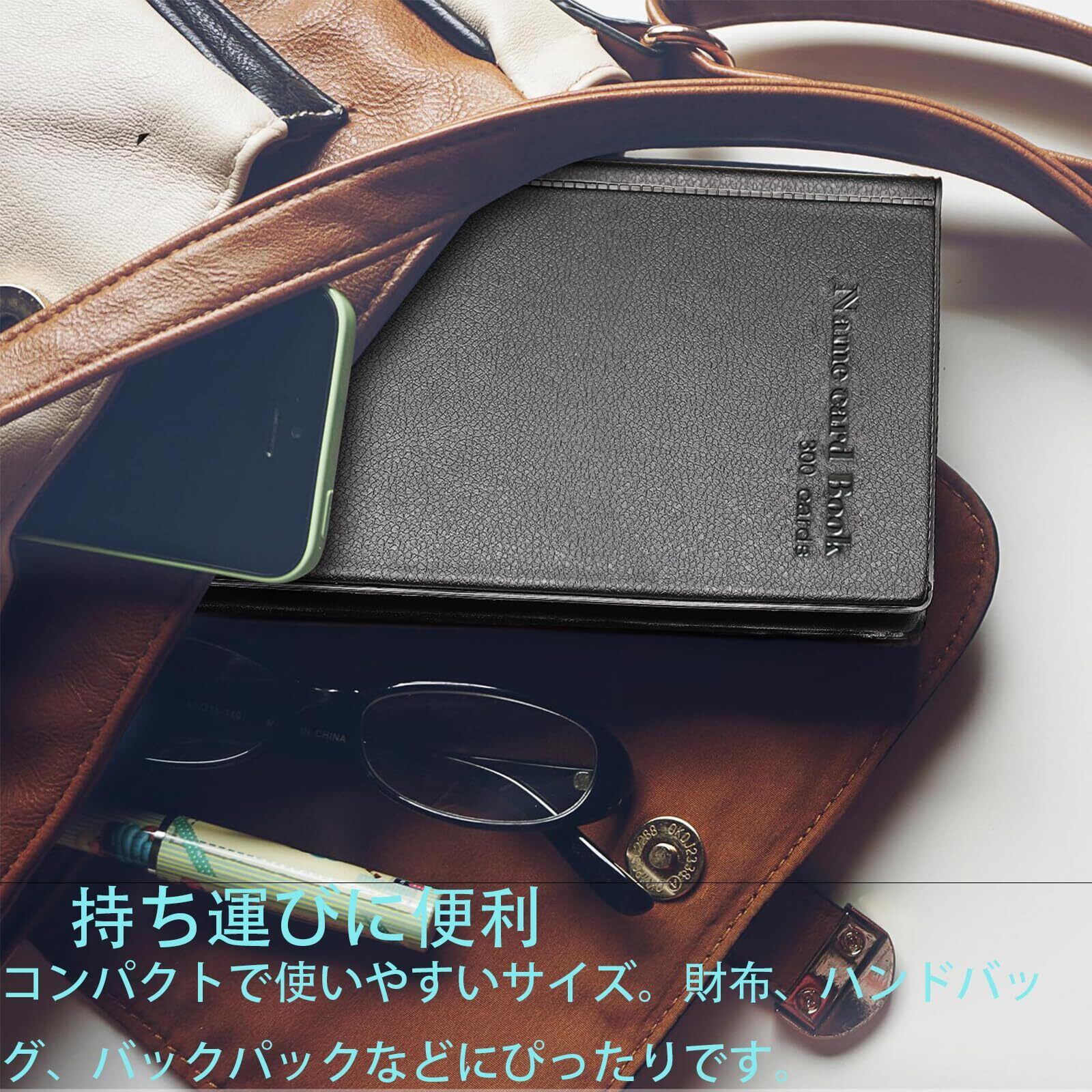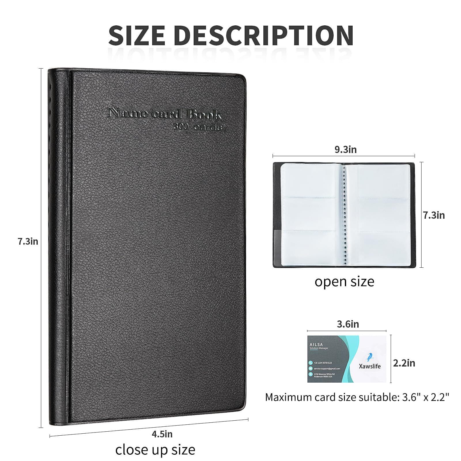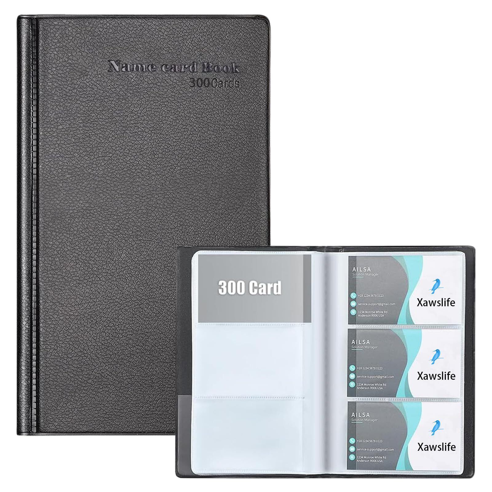 Xawslife 名刺ホルダー 収納力UP 300枚収納 名刺入れ 大容量 名刺ファイル 名刺フォルダー 名刺整理 150ポケット カードファイル レジットカードケース ビジネス用 名刺帳 透明ポケット 分類管理 収納 携帯便利 男女兼用 シンプル ブラック