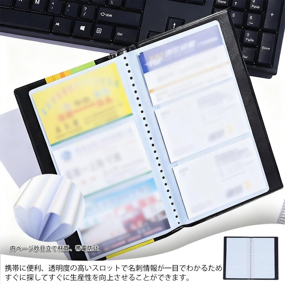 超大容量:合計40ページ、片面3袋のデザインで、最大240枚の名刺を収納できます。 表紙の内側に透明な袋をつけて、カードチケット、領収書などの小物を管理しやすい。