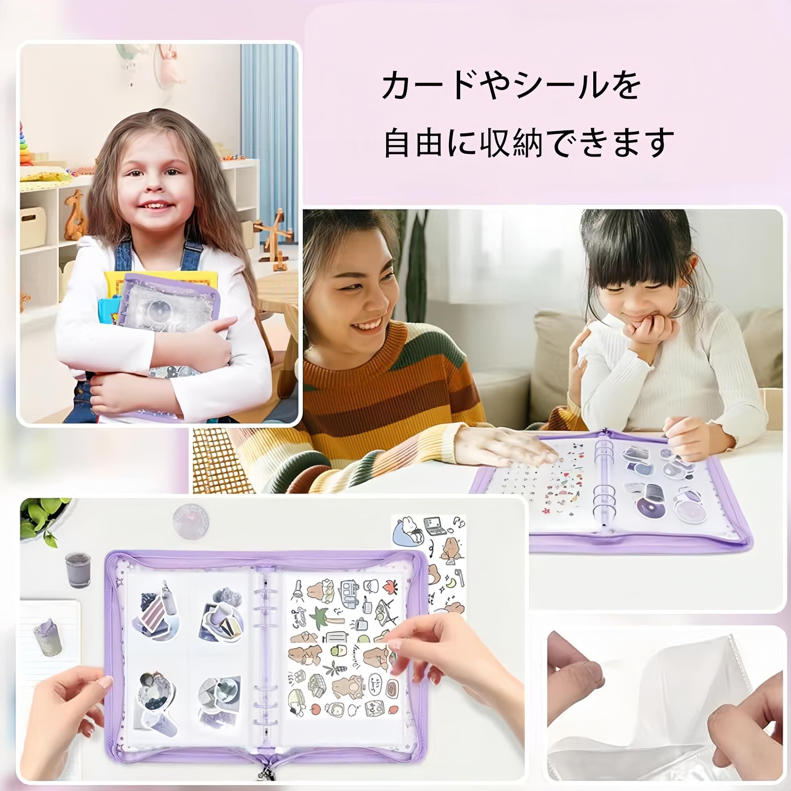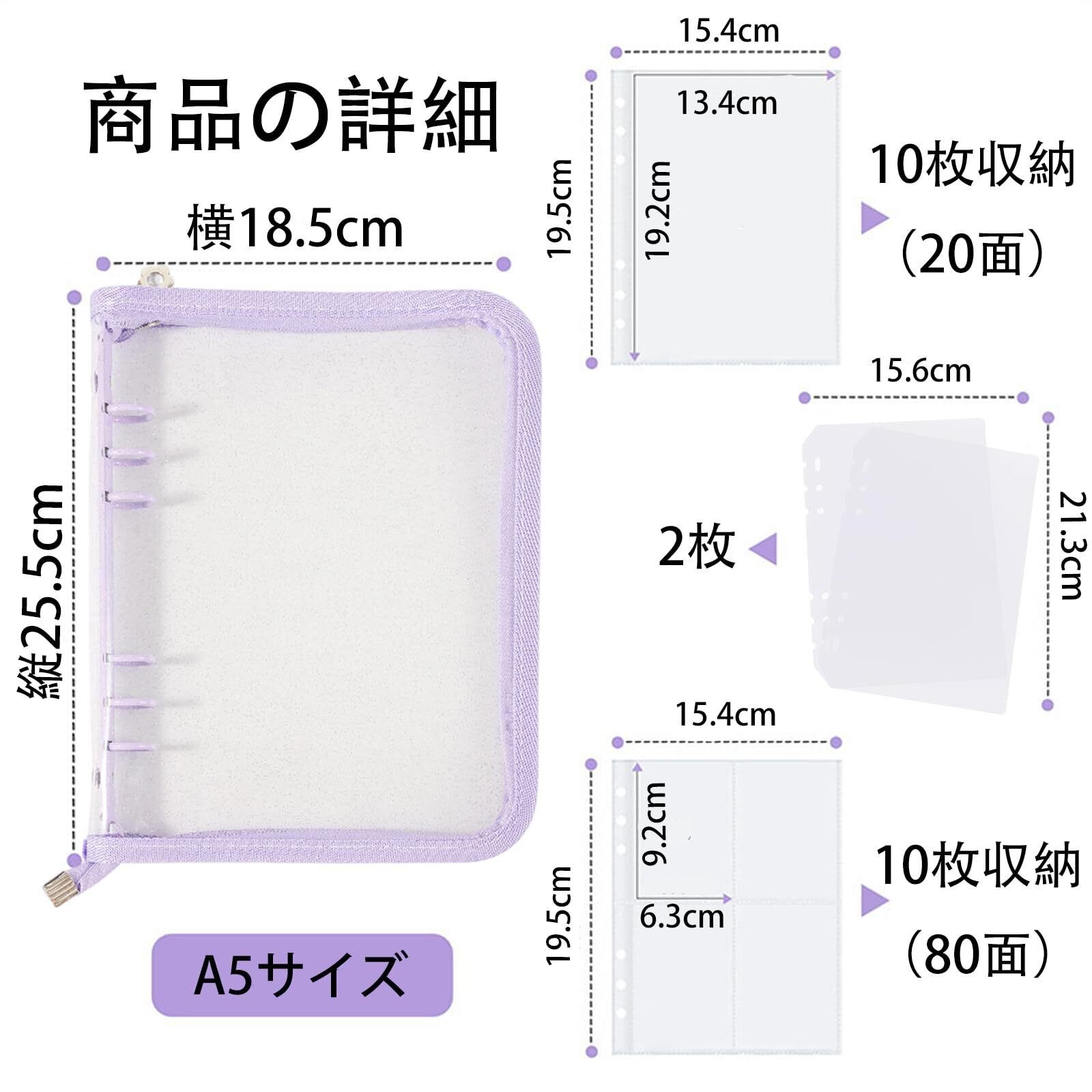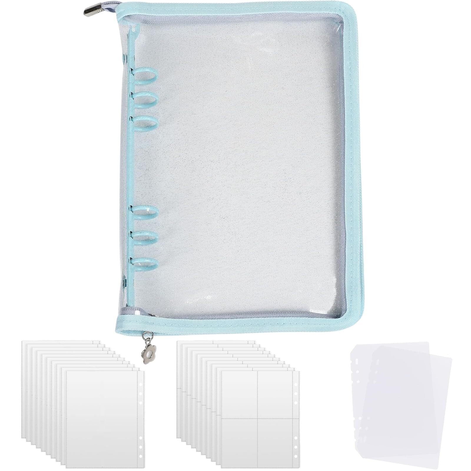 シール 手帳 透明 大きめ A5 トレカファイル 収納リフィル20枚+PP仕切り板2枚付属 キラキララメ入り A5 6穴カードバインダー アイプリ カードケース ファスナー式 (ブルー)