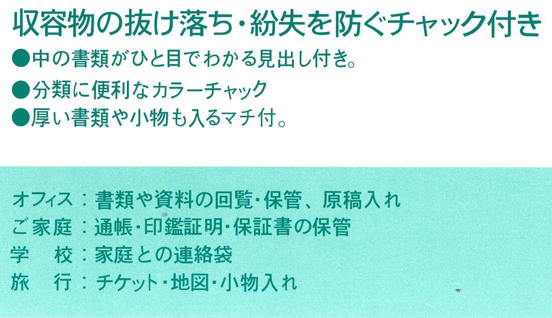 ●収容書類の抜け落ち、紛失を防ぐチャック付きのカラーソフトクリヤーケースです。