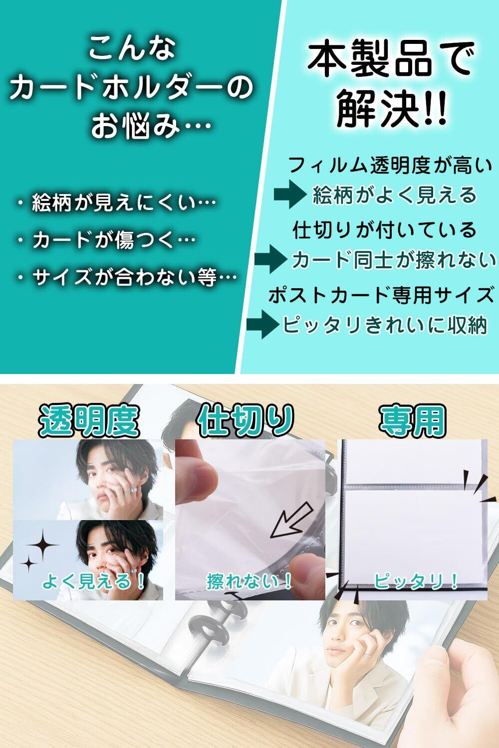 【見た目スッキリ、専用設計】ポストカードにちょうどいいサイズで、余白が少なく整理後も美しく見える仕上がり。ジャンルやキャラクターごとに分ければコレクションが一層見やすく整います。