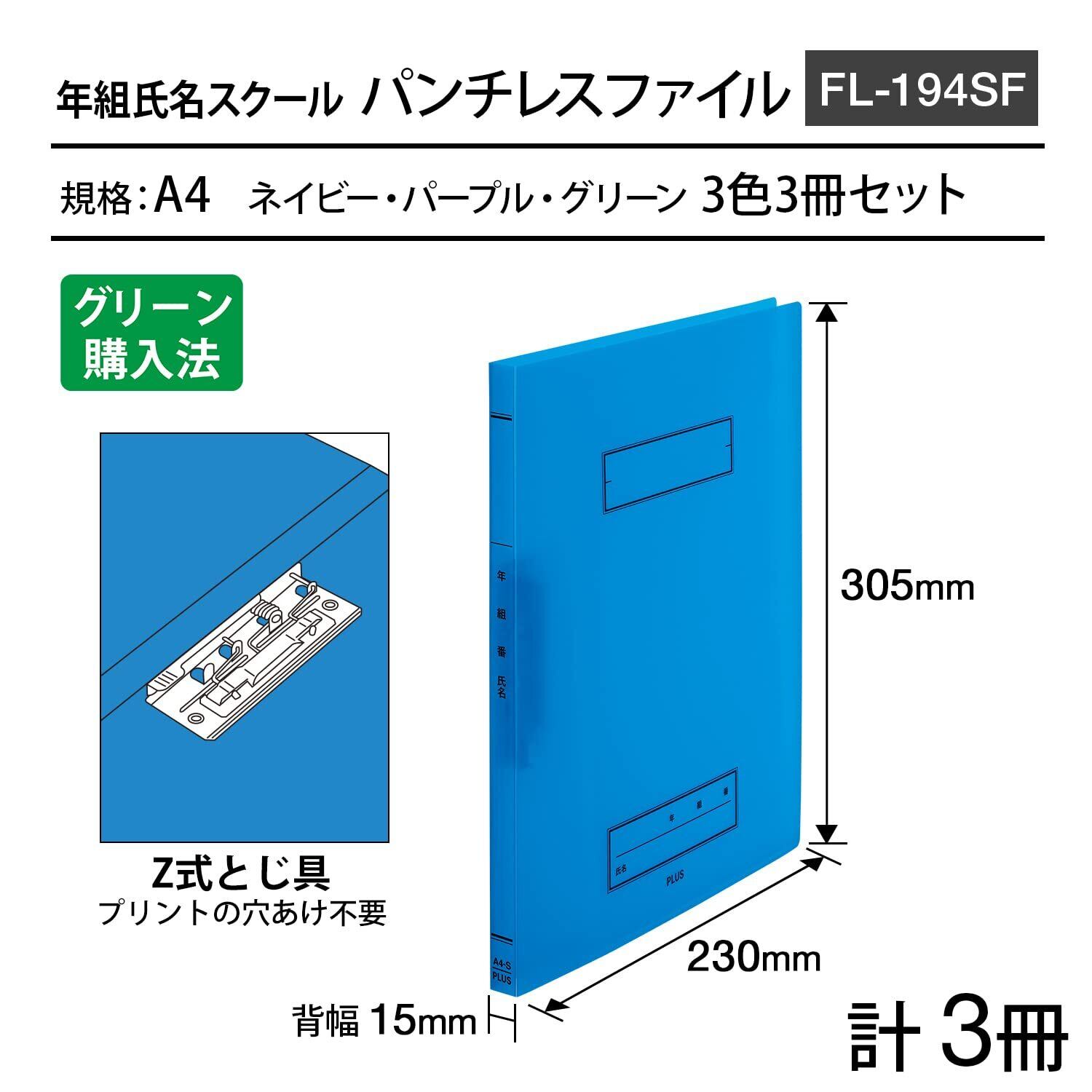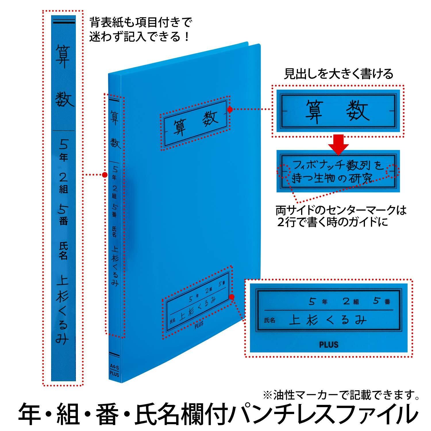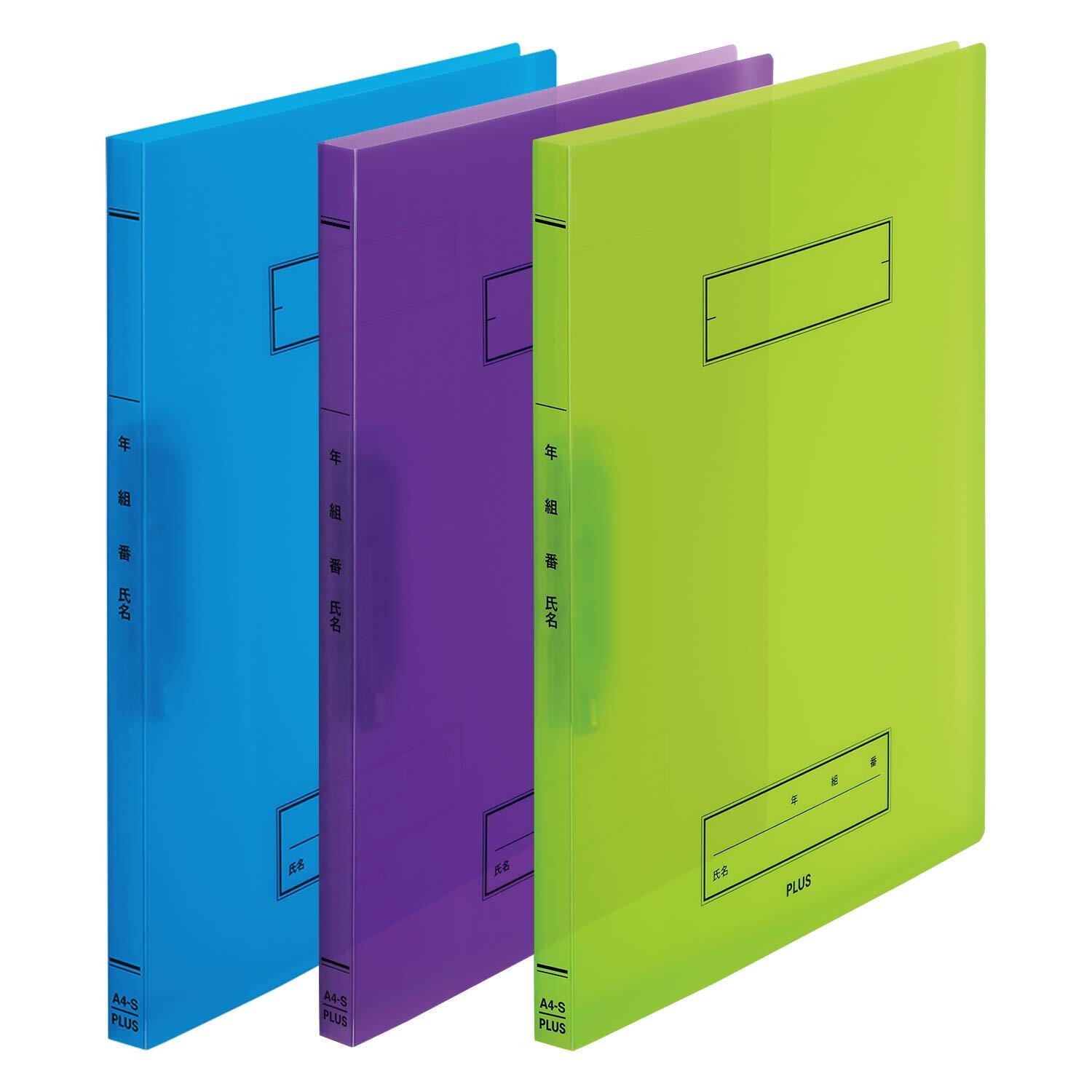 プラス 年組氏名 スクール パンチレスファイル A4 Z式 3冊入 Aセット (3色入・各色1冊)