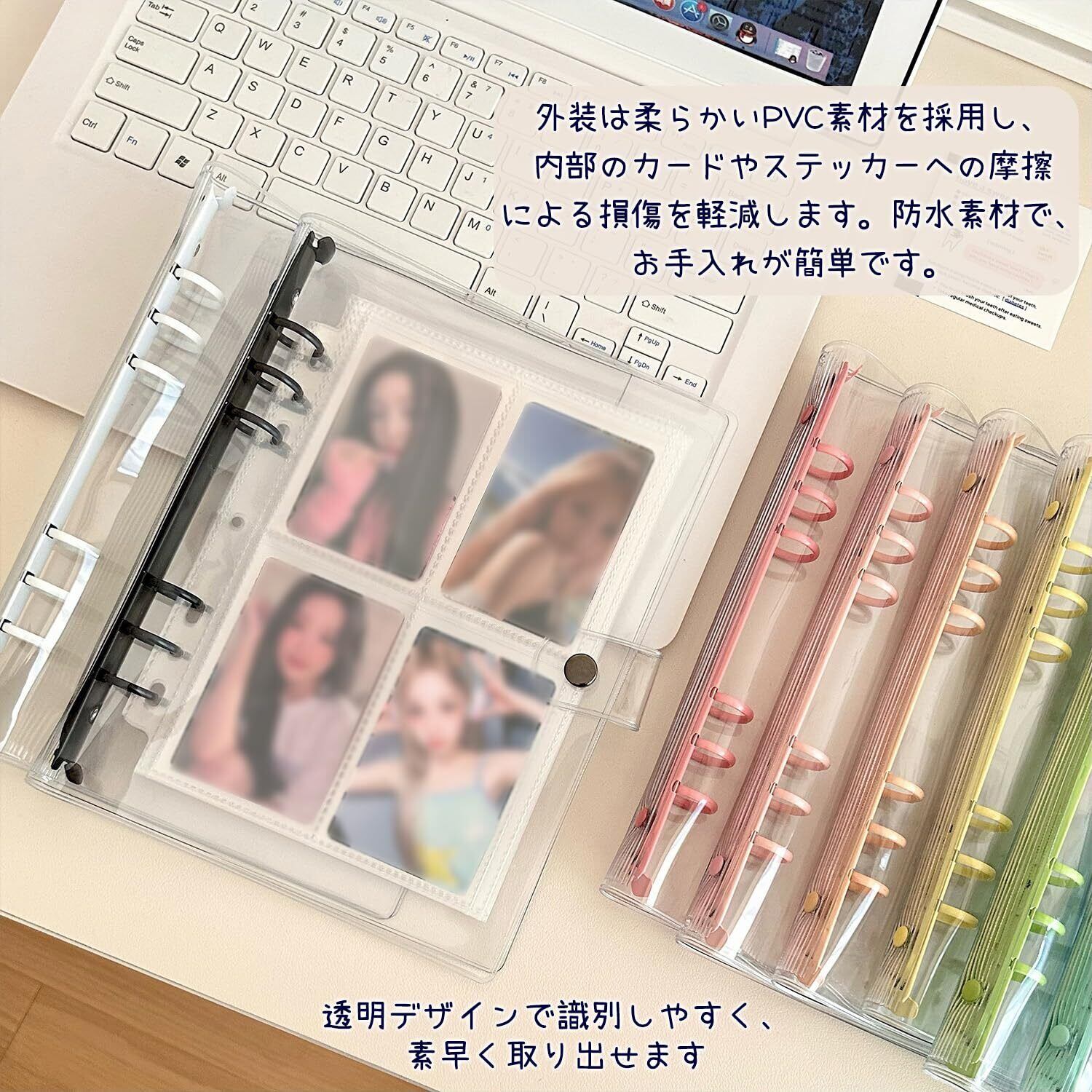 高品質 PVC 素材:外装 に PVC 素材を採用し、柔らかい触感で使用感が良いだけでなく、防水・防汚れに強く、汚れた場合でもふき取りで簡単にお手入れできます。内部のシールやカードを摩擦から守り、長期間美しく保ちます。