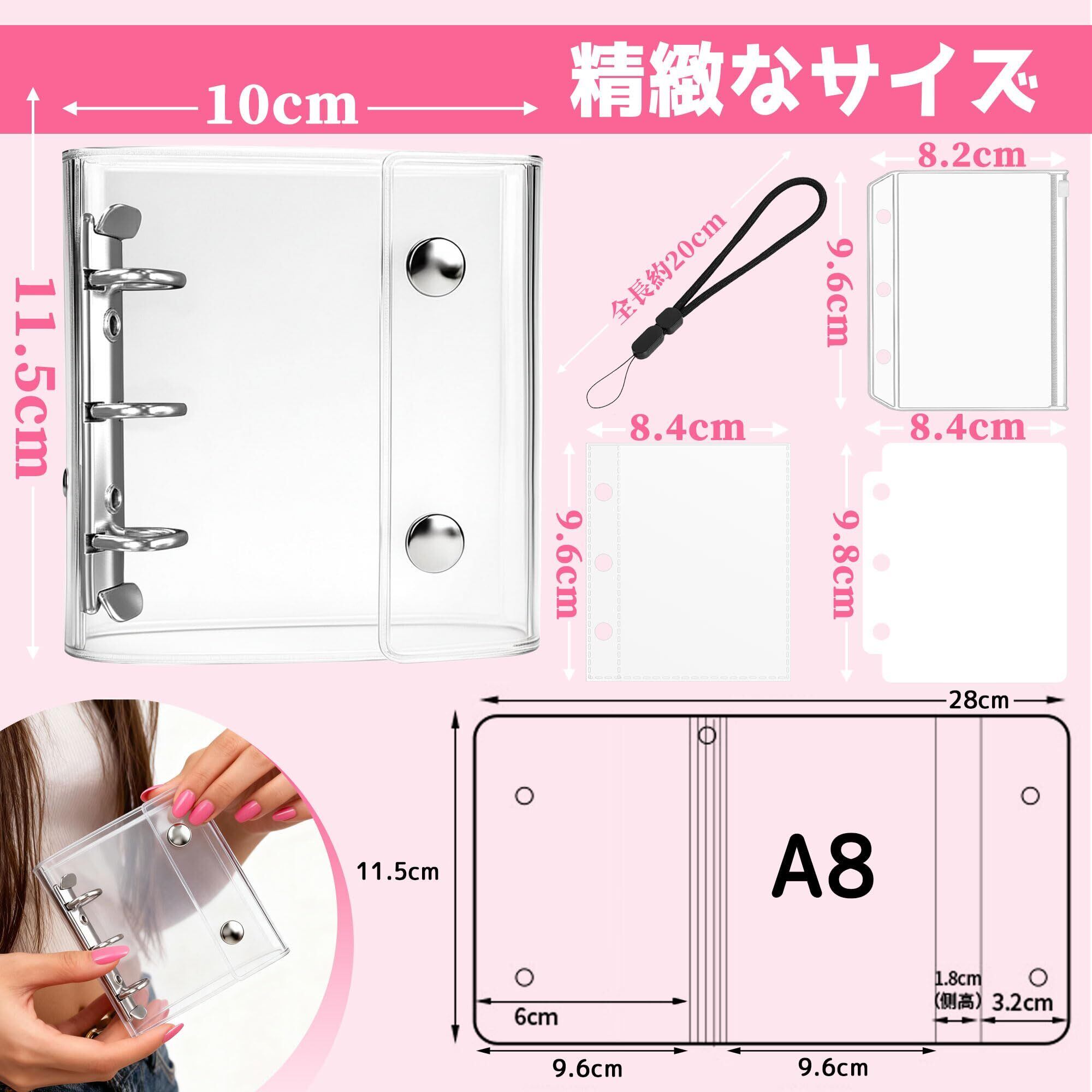 【多彩な使い方ができるマルチユース】A8サイズの3穴タイプのシールバインダーは、はがせるPPシートを使ったシール収納だけでなく、日記帳やスケジュール帳、旅行の思い出アルバムとしても活用できます。透明なクリアカバーは自由なデコレーションが可能で、女の子のかわいいミニシール帳として、世界に一つだけのオリジナルシール手帳を作成できます。