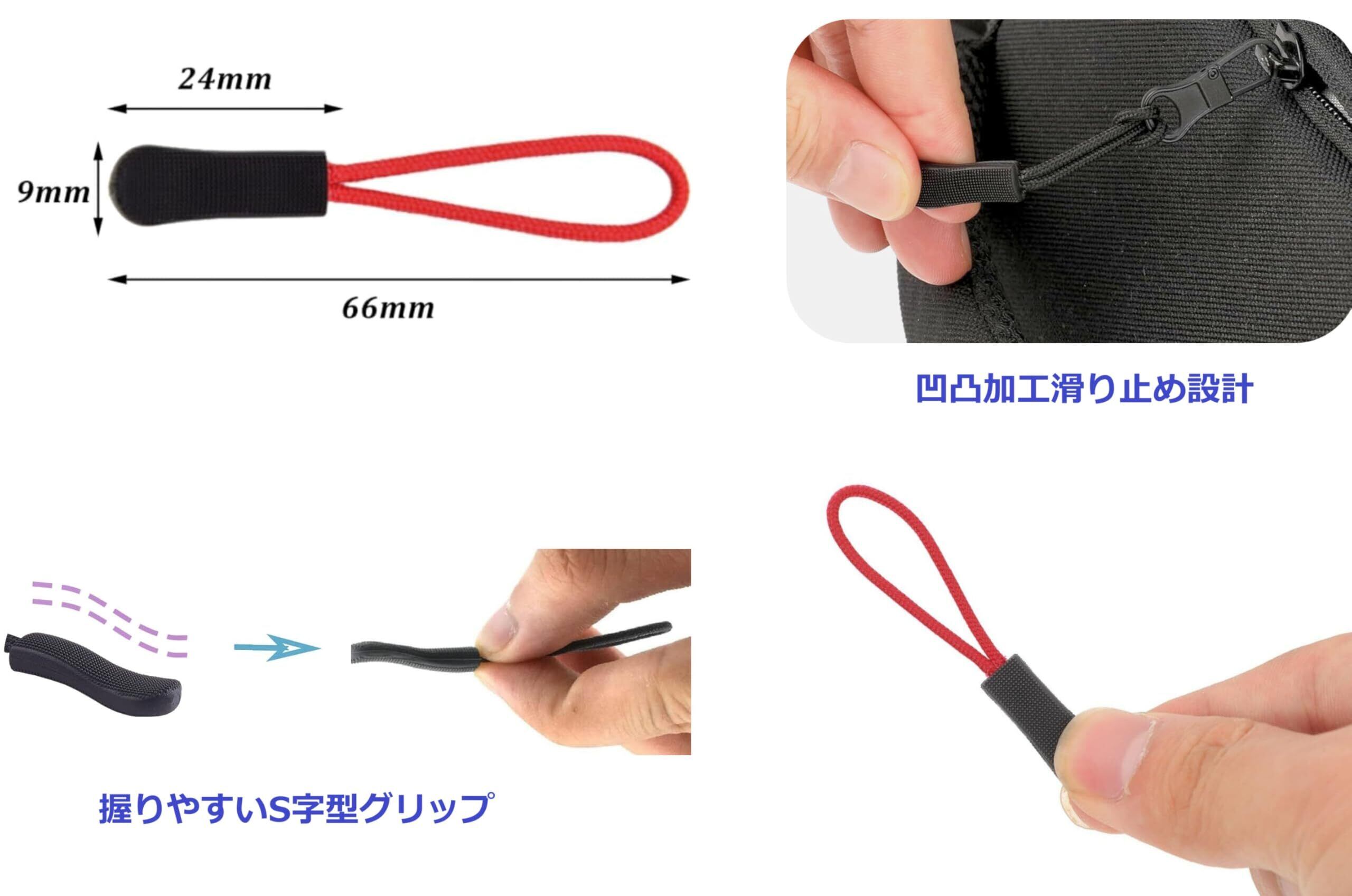 【簡単取付け ジッパータブ】 ジッパー端のリングに結ぶだけの取り付け簡単で、ほとんどのファスナーに付けられます。汎用性が高く、ジッパーで開閉する様々なアイテムに対応します。ファスナーやジッパーに紐を通して結ぶだけの簡単装着出来ます。針や糸など裁縫用具やドライバーや錐などの工具も不要です。主張しないシンプルなデザインは幅広いアイテムにマッチします。