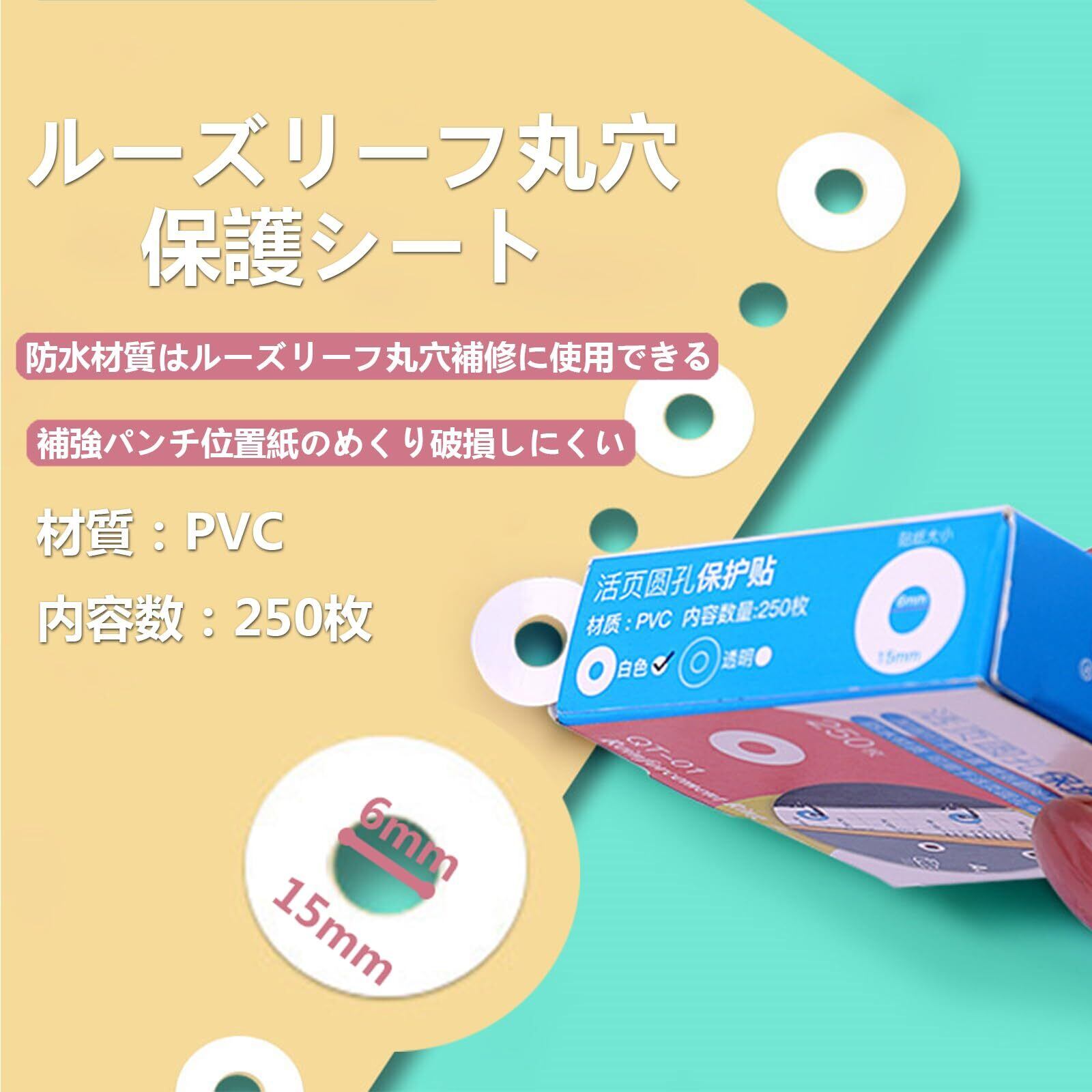 【新着商品】ルーズリーフ本 パンチ穴補強シール パンチラベル ビニールパッチ 250片 外径15mm 穴径6mm (クリア)