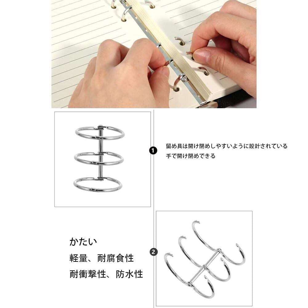【2022最新】開閉しやすい3連ルーズリーフメタルリング、ルーズリーフ本綴じ開口鉄環コイル、20 mm語彙書文書収納,10個