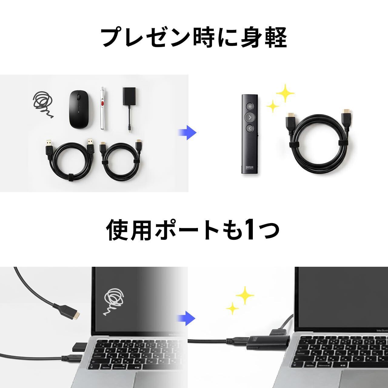 サンワダイレクト ポインター ワイヤレス 3in1 レシーバー PD充電対応 HDMI変換 4K/60Hz USB充電式 Mac対応 クリッカー プレゼン 発表会 200-LPP051BK
