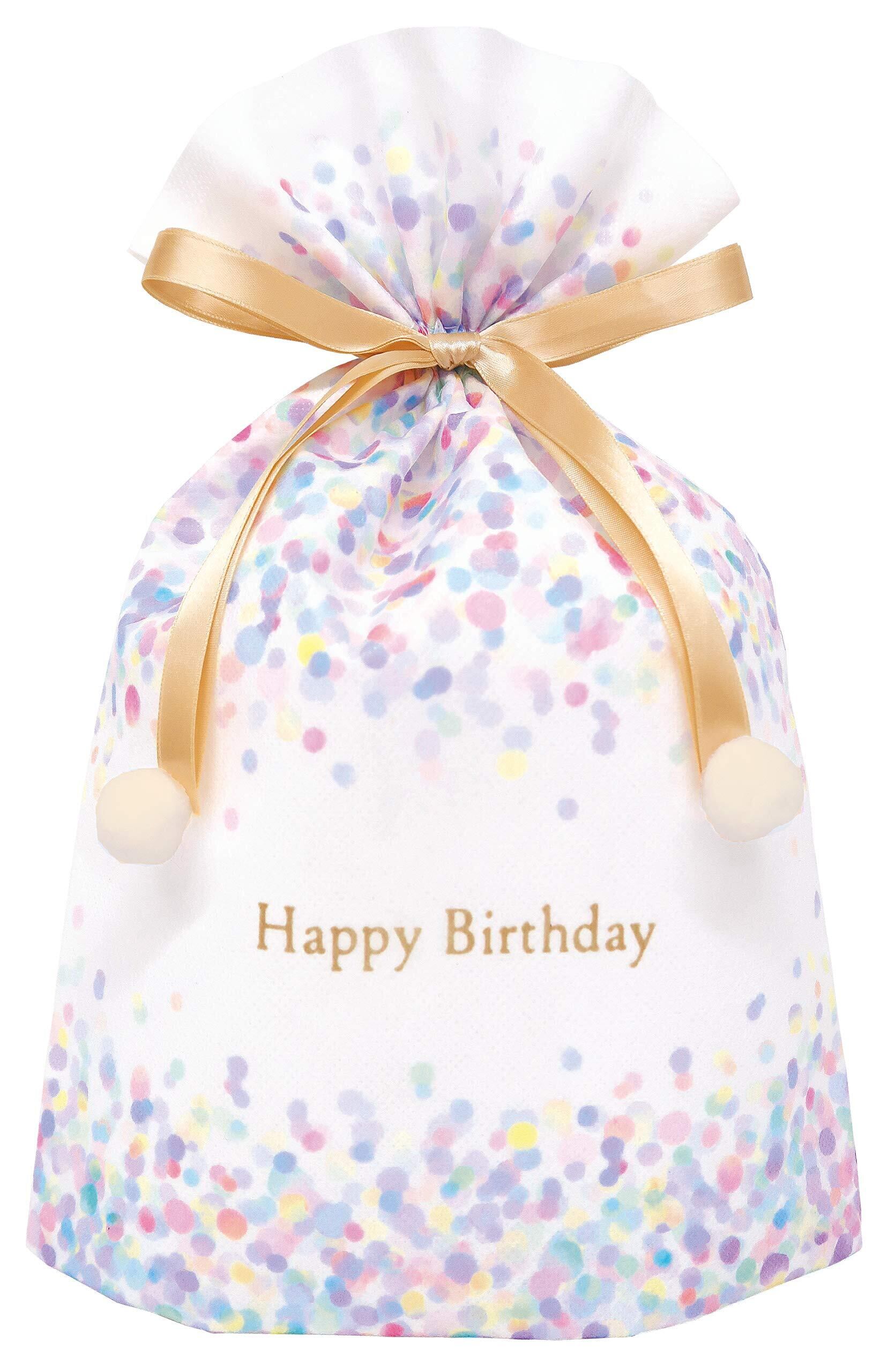 ハッピーバースデーのメッセージがプリントされたラッピングバッグです