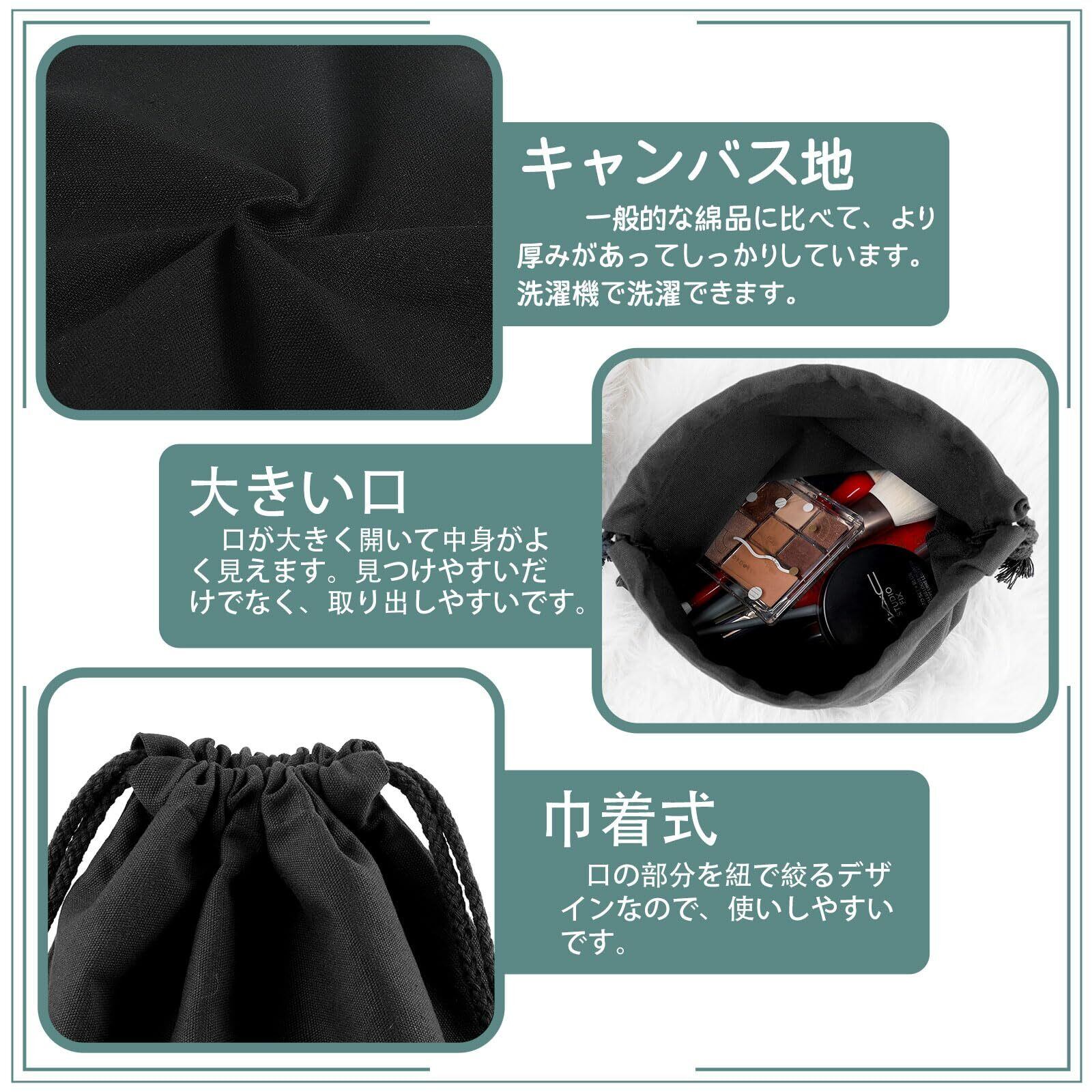 FINGOOO 巾着袋 2枚セット 収納袋 無地 帆布 ギフトバッグ キャンバス製 かわいい おしゃれ 可愛い ラッピング 旅行 学校用 体操服袋 メイク 化粧品 小物入れ (黒, 24*32cm)