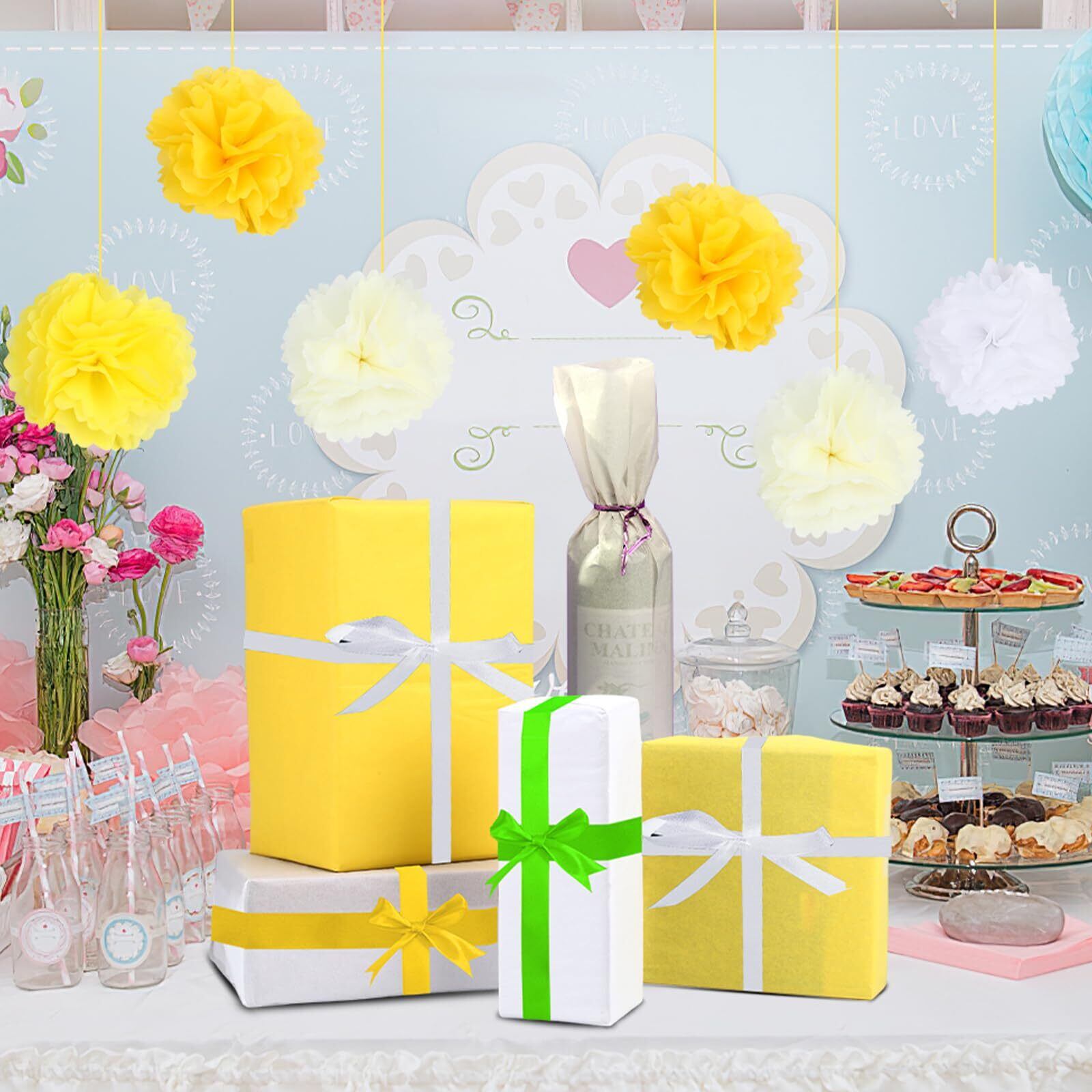 【幅広く適用】手芸素材としては、ペーパーポンポン、ペーパーフラワー、タッセルガーランド、紙吹雪などの手作りによく使います。 緩衝材としては、物品の隙間埋め、型崩れを防ぐ詰め物に活用します。ラッピングペーパーとしては、プレゼントラッピング、花の包装、ラッピングの梱包などに使用されます。結婚式、誕生日、記念日、バレンタイン、七夕祭りなど、様々なシーンで活躍しています。