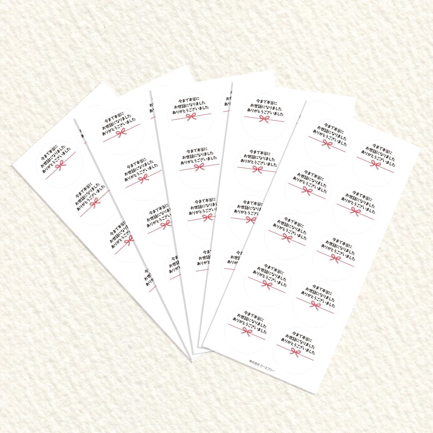 ギフトシール メッセージシール 水引リボン柄 50枚(5シート)日本製 (今まで本当にお世話になりましたありがとうございました)