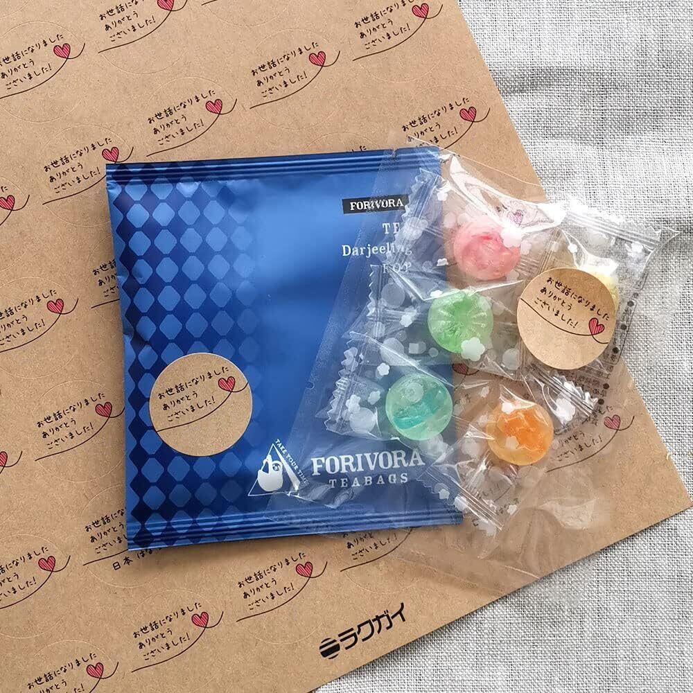 お世話になりました ありがとうございました シール 48枚 クラフト紙 丸い メッセージシール ハート水引き (クラフト)