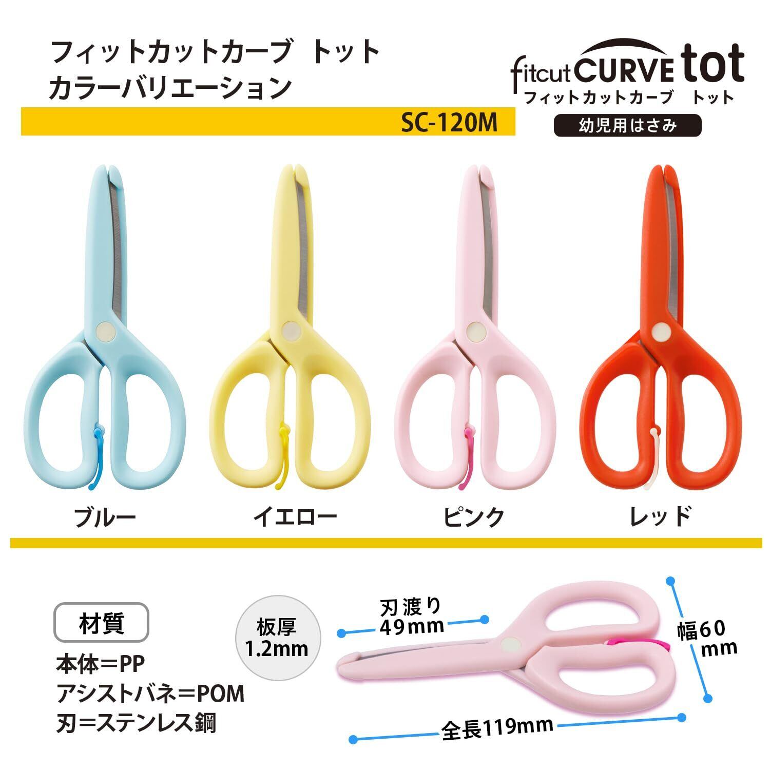 家庭用はさみNo.1ブランドのフィットカットカーブから、はさみデビューに最適な幼児用が登場。