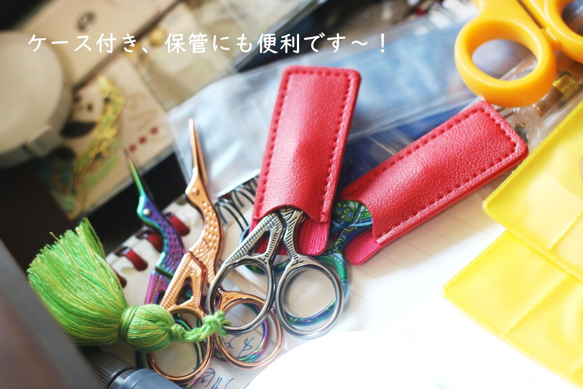 三花 【鶴型デザイン】ローズゴールド手芸はさみ 糸切り用(94mm)保護キャップ&タッセル付き 収納便利 贈答対応