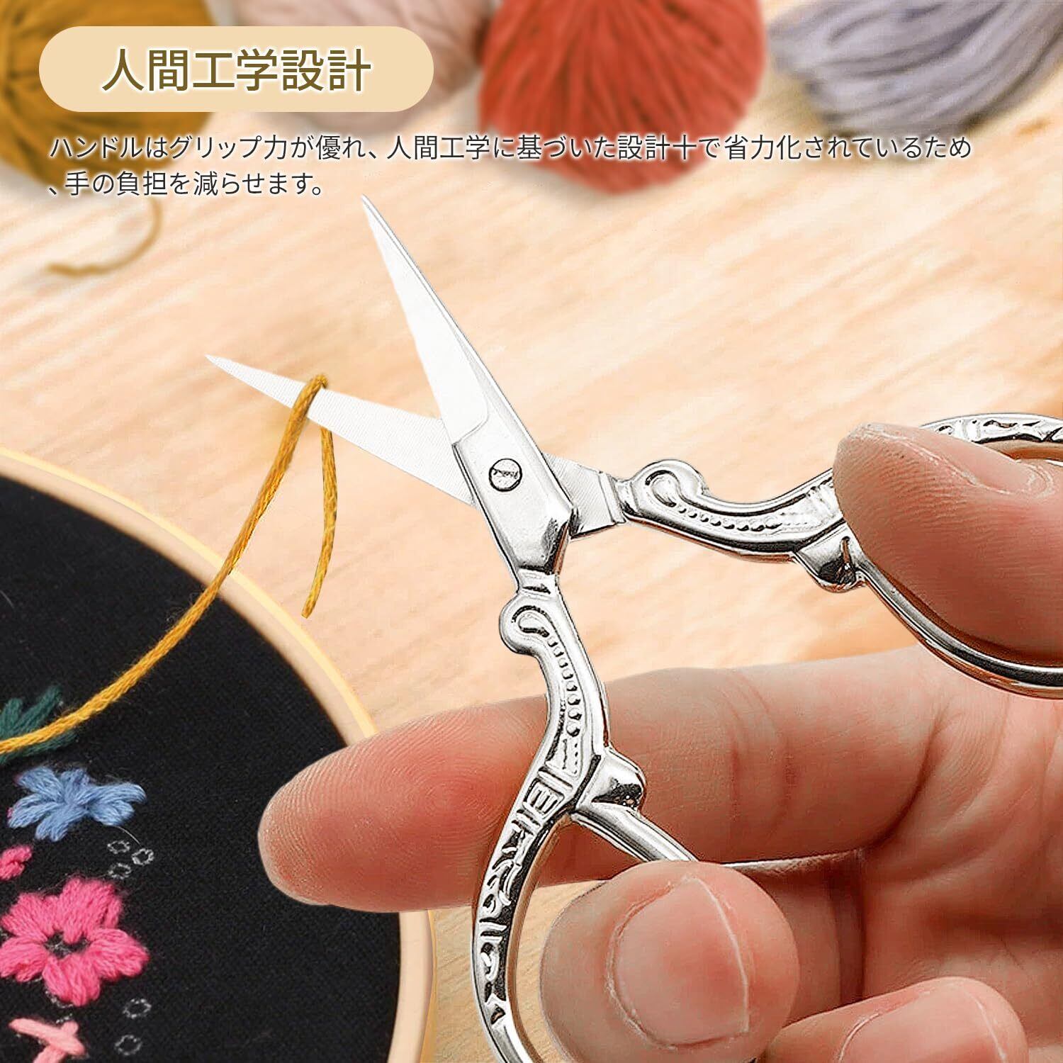 刺繍 はさみ 裁縫 はさみ ミニ 3色 ステンレス製 糸切りバサミ 滑り止めグリップ 手芸用 ヴィンテージデザイン DIY 切れ味鋭い