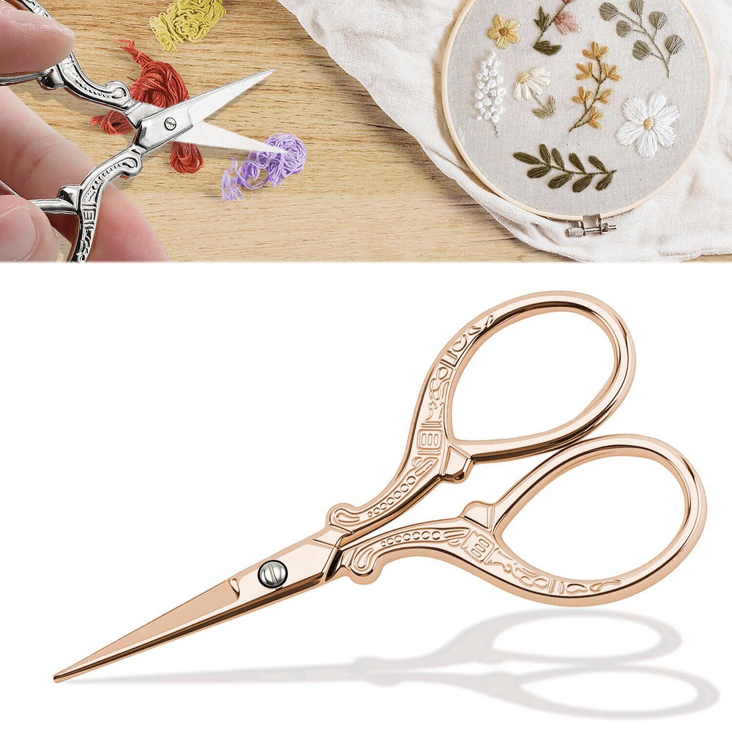 刺繍 はさみ 裁縫 はさみ ミニ 3色 ステンレス製 糸切りバサミ 滑り止めグリップ 手芸用 ヴィンテージデザイン DIY 切れ味鋭い (ローズゴールド)