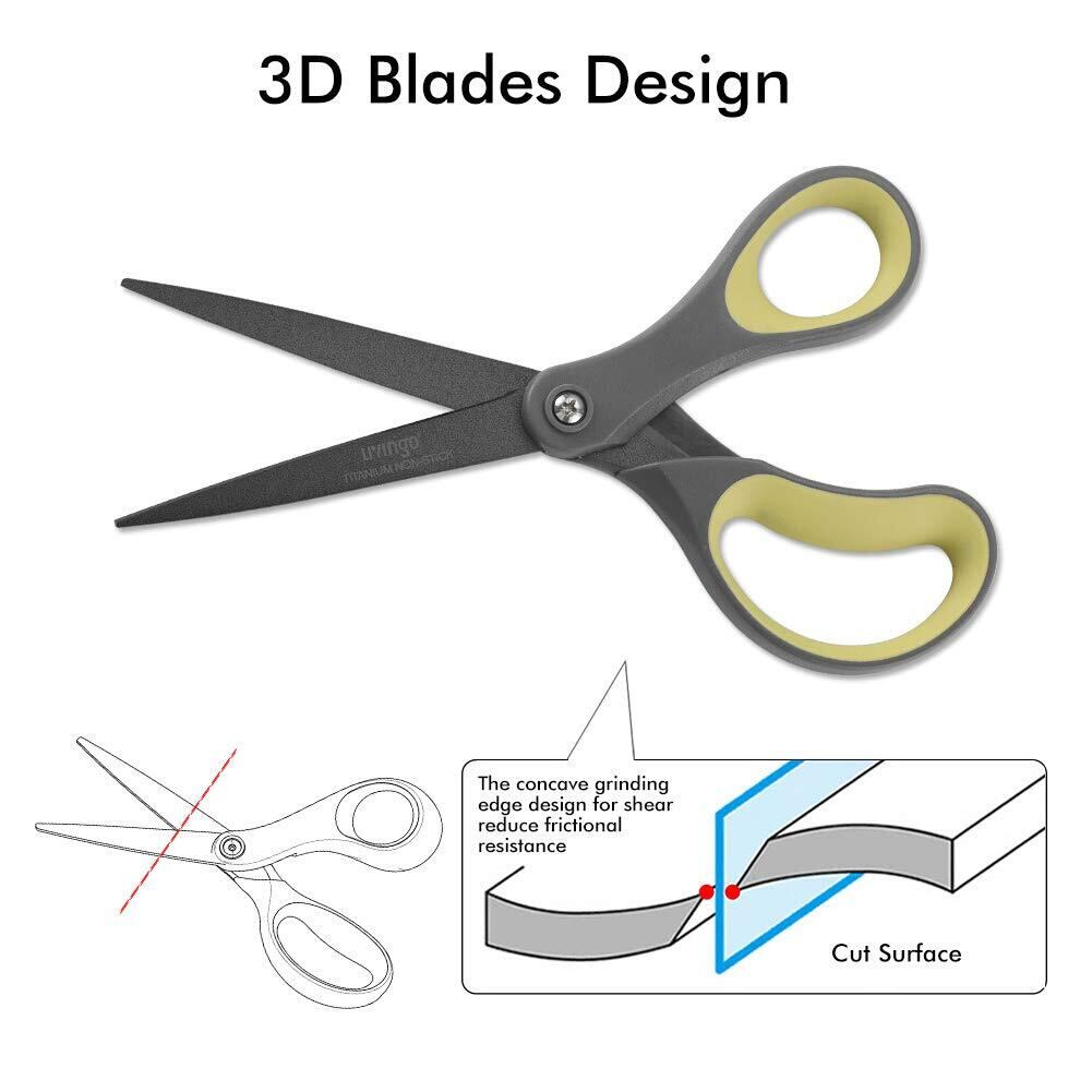 LIVINGO 2本セット 21cm チタン グルーレス ハサミ はさみ 事務用 プレミアム フッ素コート ステンレス 快適なソフトハンドル 超鋭 手芸 いハサミ(きいろ/グリーン)