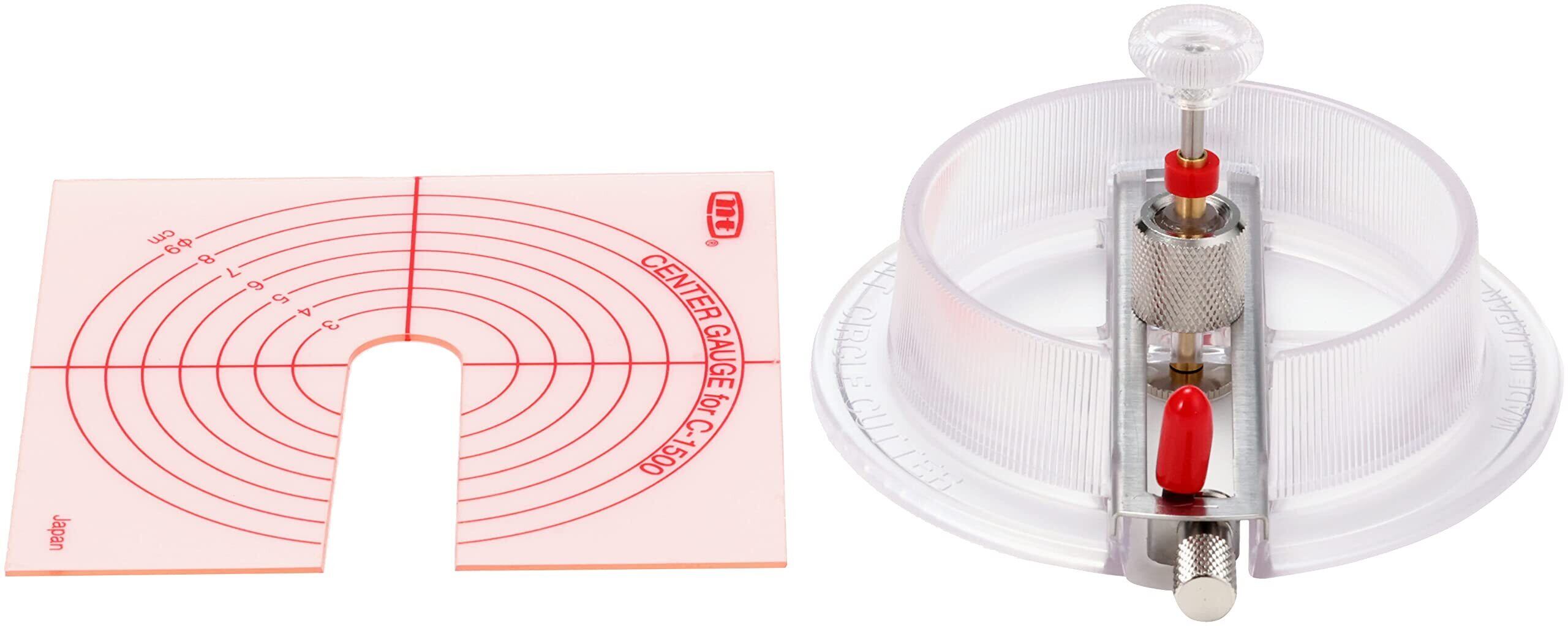 中心にピン穴を開けずに切れ、内封されているセンターゲージを使えば中心出しが簡単で、直径1.8~17cmの大きさを切り抜くことが可能。