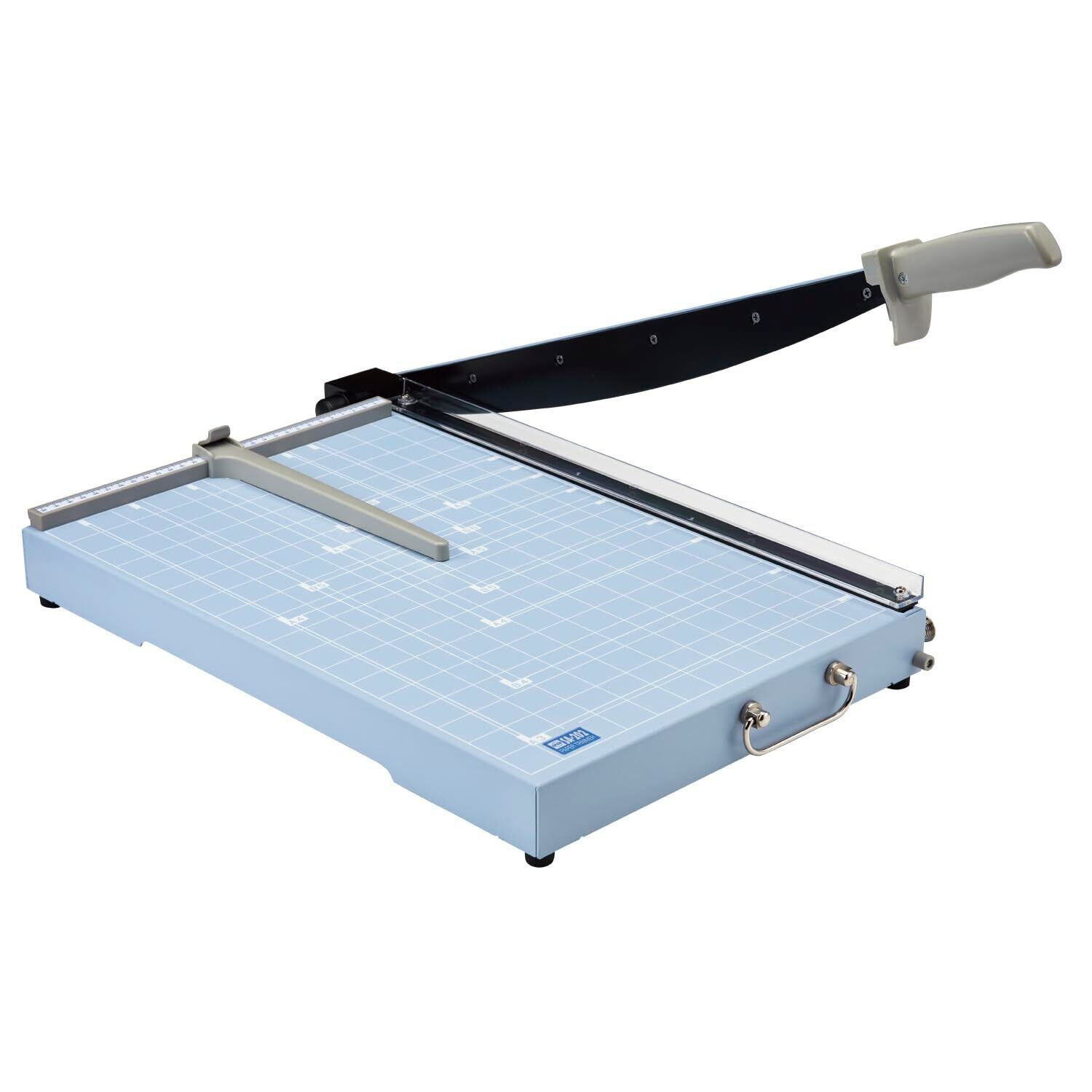 「円弧状の強力刃でラクラク裁断」「持ち運びに便利な手提げ金具付き」「透明紙押えで裁断位置が確認出来ます」「ハンドルストッパー付」「テーブルには用紙サイズが表示されています」