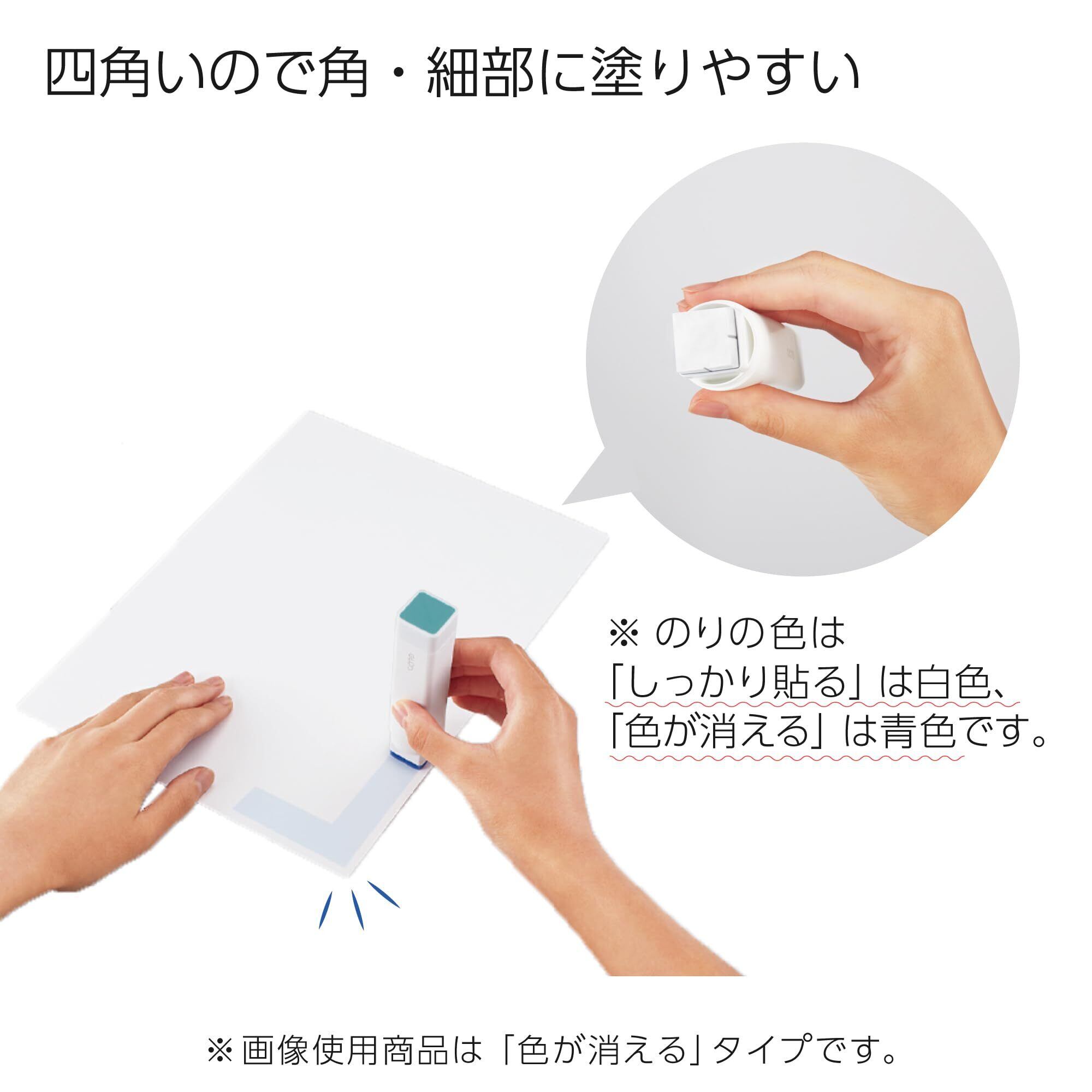 ・四角いのりに気密性を保つ丸キャップを組み合わせ、のりの乾燥を防ぐ。
