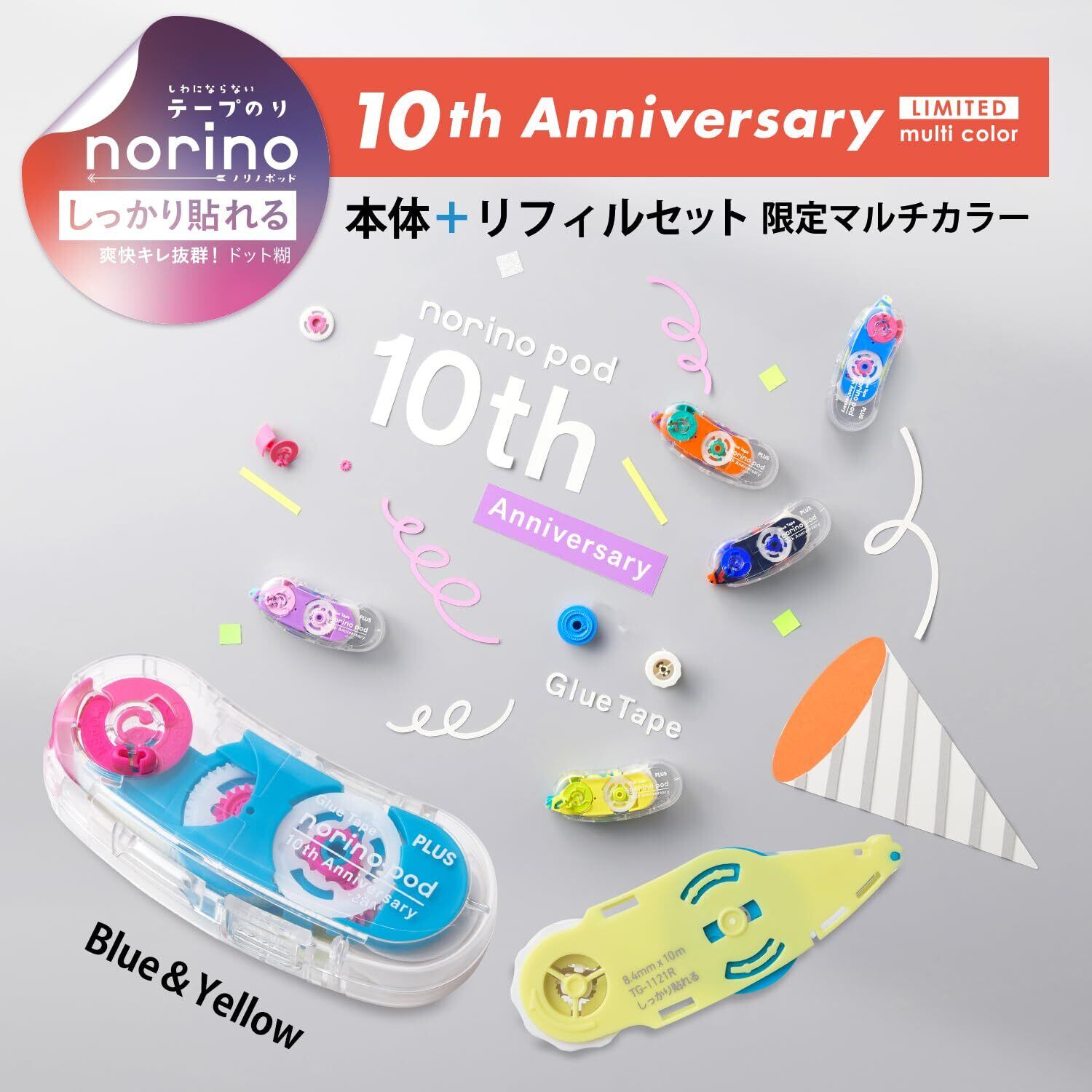 プラス テープのり ノリノポッド 10th ドット8.4本体+リフィルセット 限定 マルチカラー Blue&Yellow TG-1121-LE-11 54-790
