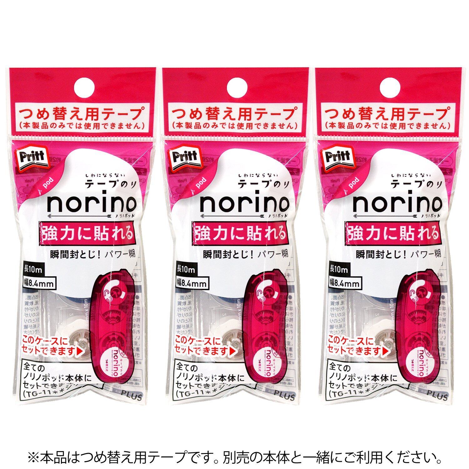 【新着商品】プラス テープのり ノリノポッド 詰替テープ 強力に貼れる 8.4mm幅 3個入 38-906