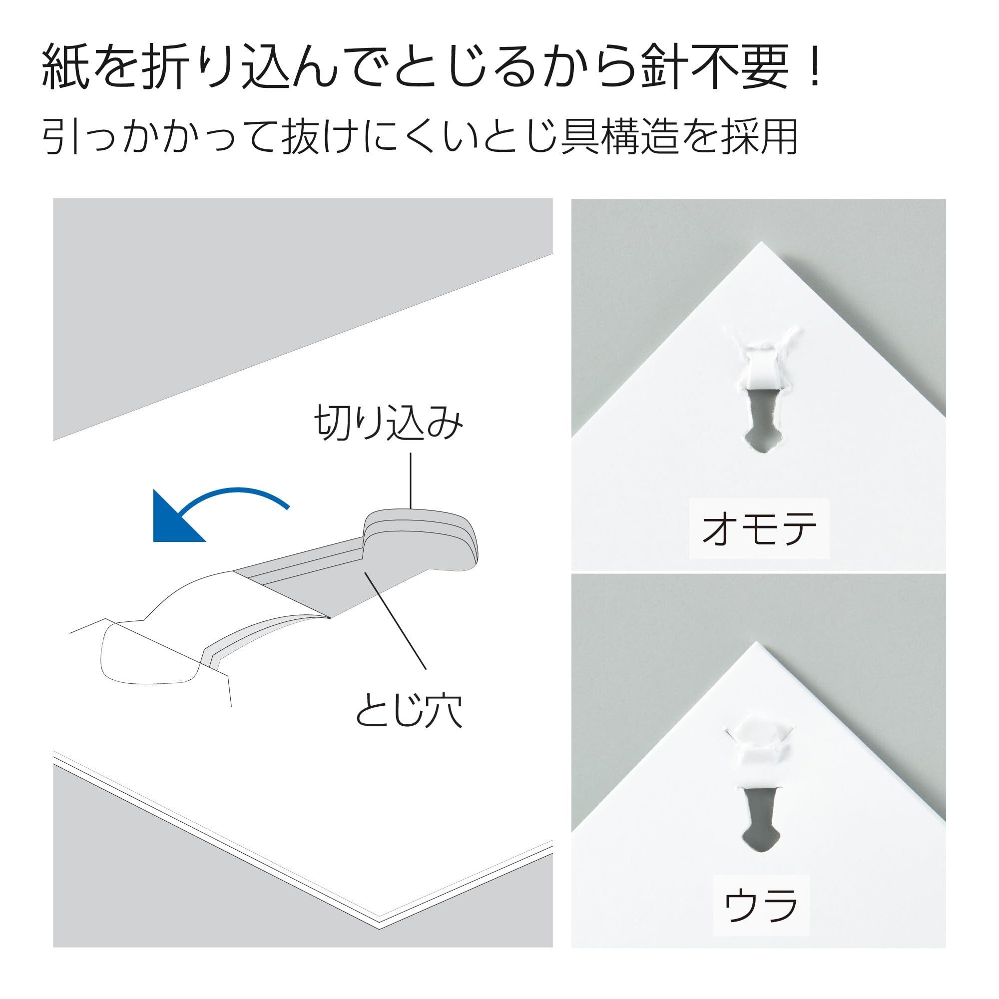 針を使わずに紙をとじることができるので、針補給の必要がありません。